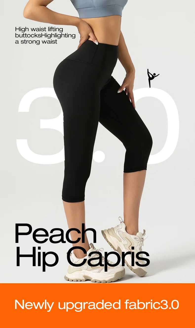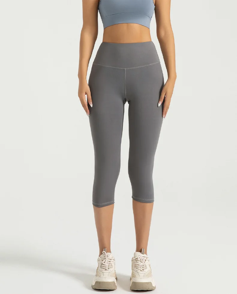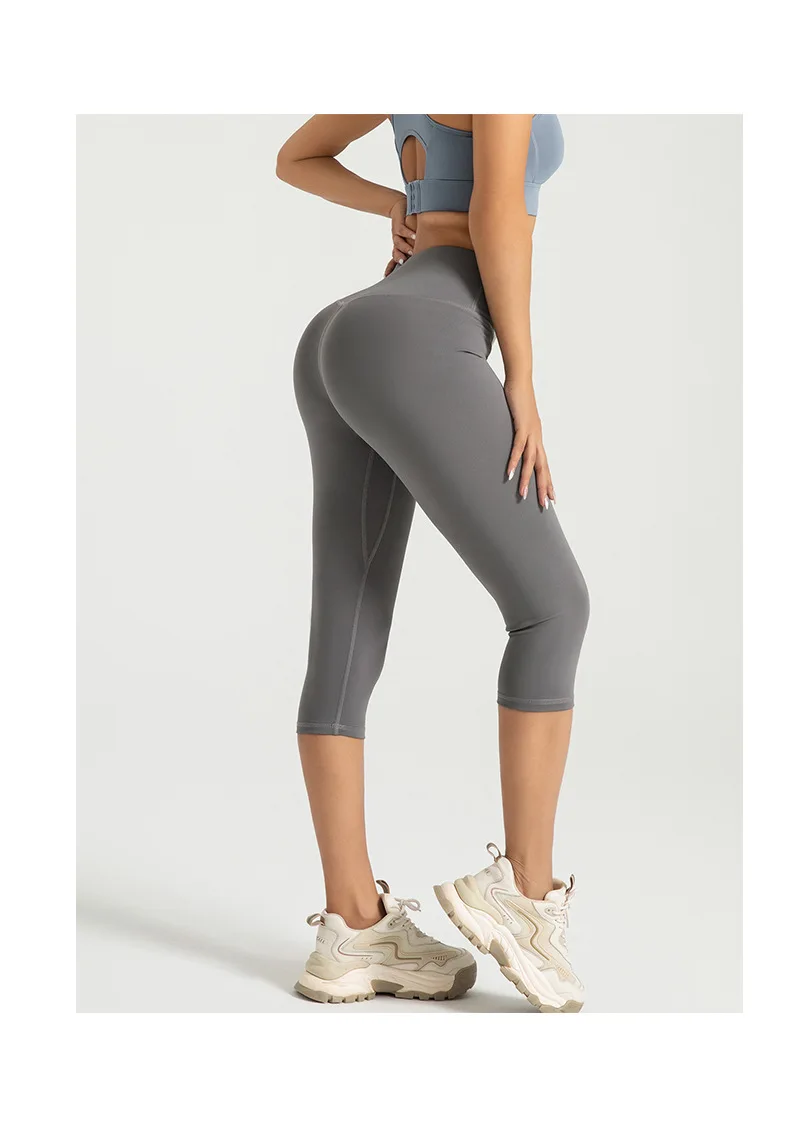 Color: black, Size: M - Women's Yoga Pants High Waist Capri Pants 3/4 Leggings Exercise Seamless Abdomen Running Fitness Tights Gym