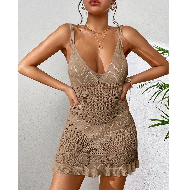 Halter Dress Clothes Women Summer Solid Color Sleeveless Knitted Dress Backless Stylish Beach Dresses
