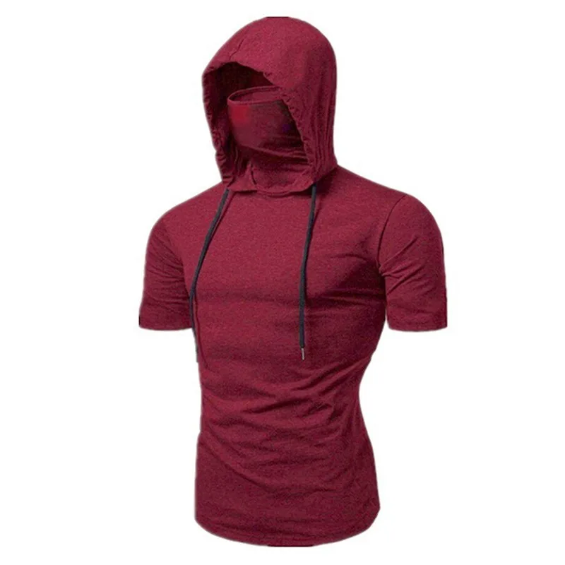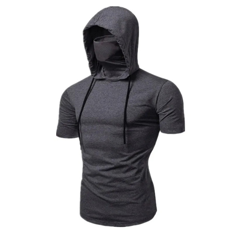 Color: black, Size: S - Mens Gym Thin Hoodie Short Sleeve Hoodies With Mask Sweatshirt Casual Splice Large Mask Hoodie Sweatshirt Hooded Tops Cycling