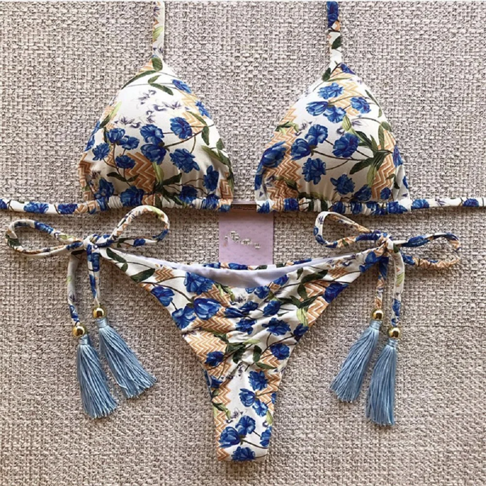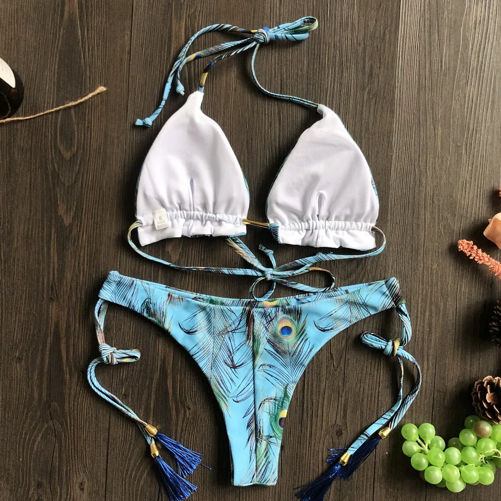Color: black, Size: S - RUOTONGSEPT Sexy Micro Bikinis Set 2022 New Swimsuit Women Feather Print Bandage Swimwear Female Bathing Suit Brazilian Biquinis