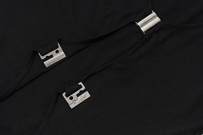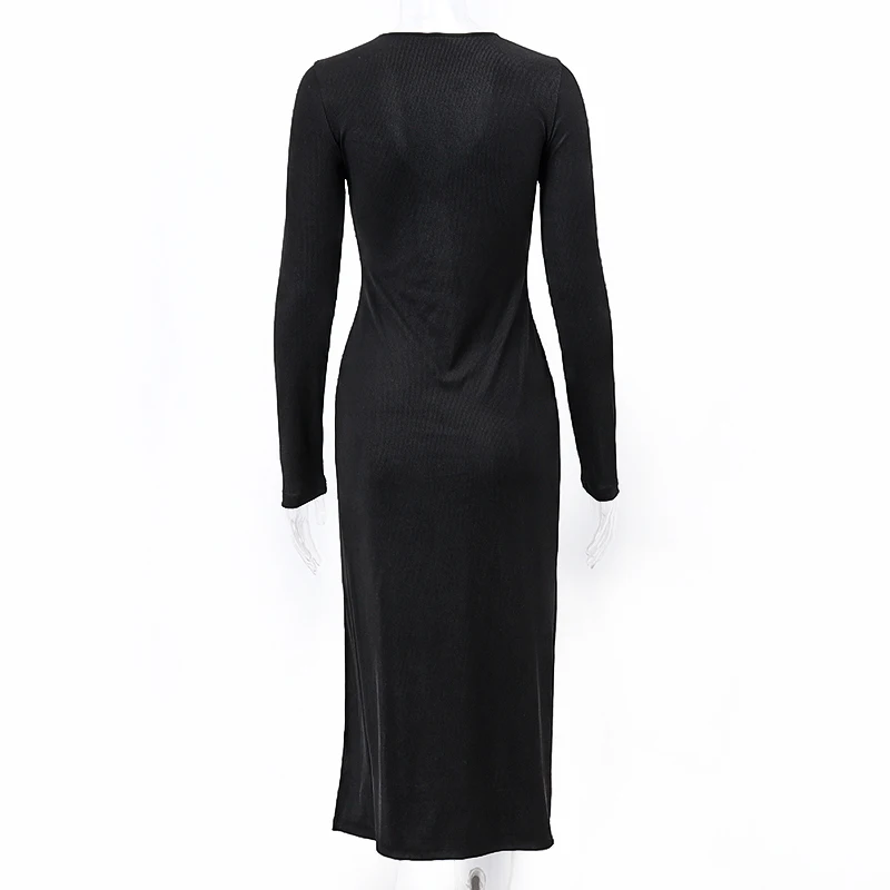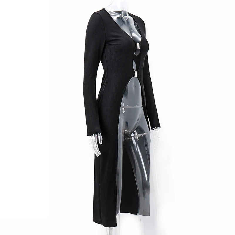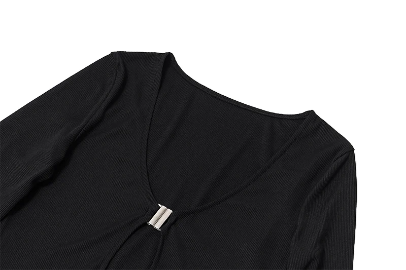Color: black, Size: S - WhereMery Sexy Hollow Out Long Sleeve Maxi T Shirt Women V Neck Low Cut Metal Button Black Top Streetwear Cusual Lady Tops Tees