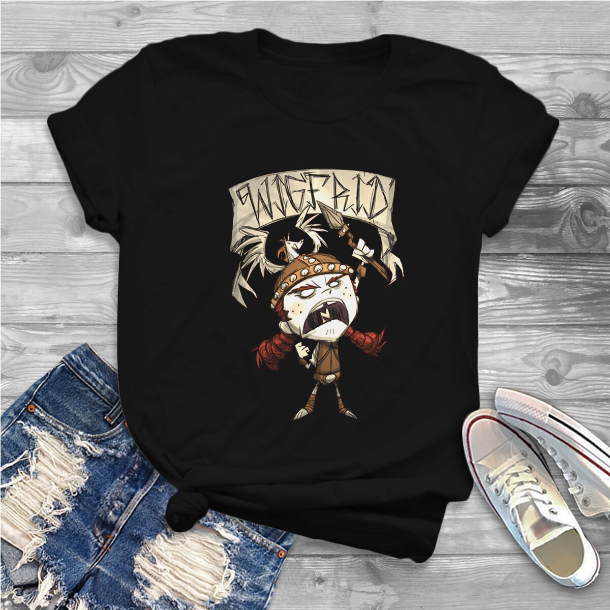 Color: black, Size: S - Wigfrid Casual Polyester TShirt Dont Starve Style Tops Comfortable T Shirt Female