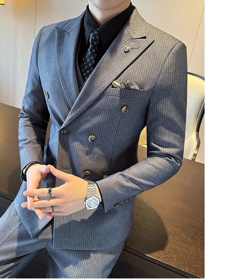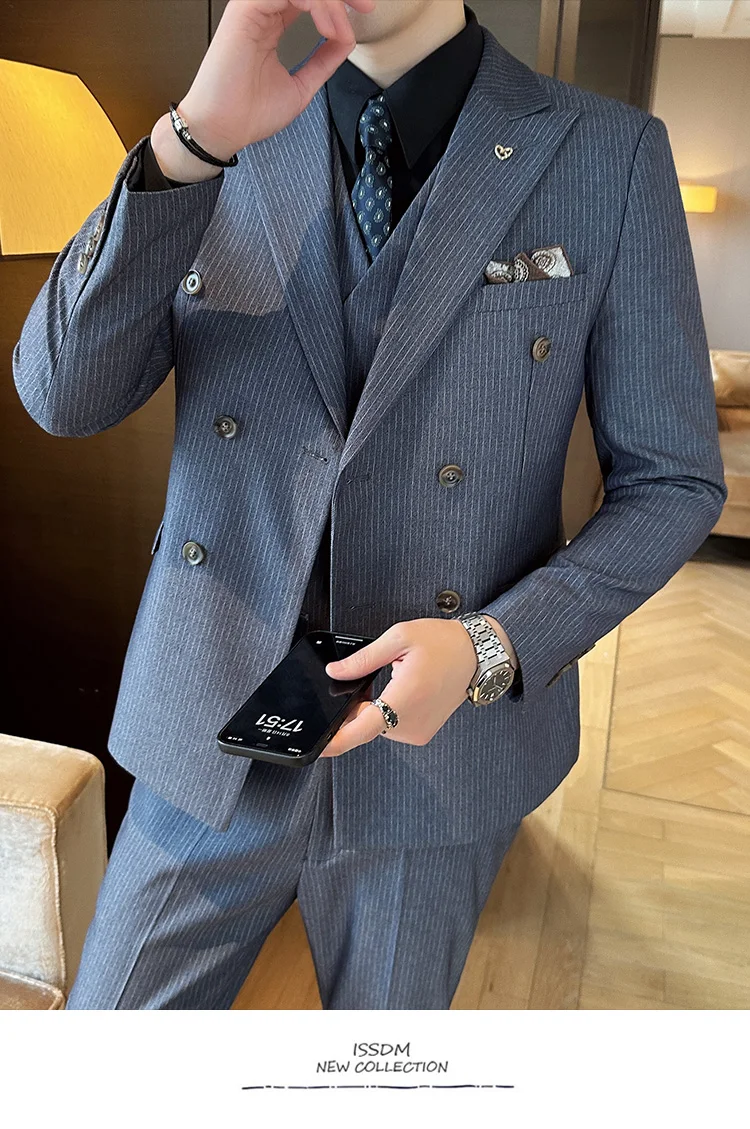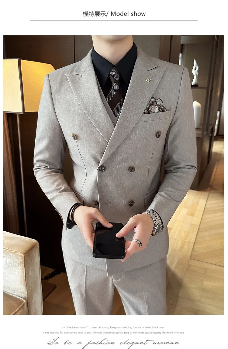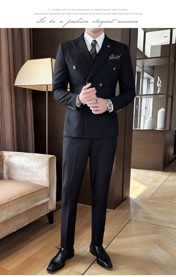 Color: black, Size: XL - 2025 Men's Double Breasted 3/2 Piece Business Casual Wedding Dress Suit with Trousers Regular Fit Bridegroom High Sense
