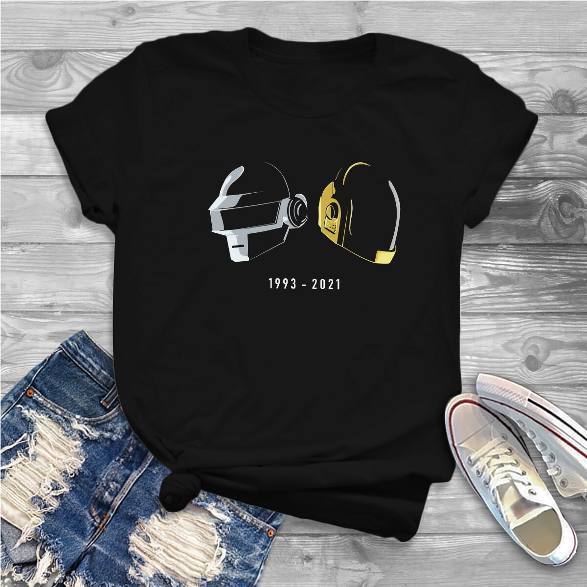 Color: black, Size: XL - Daft Punk Electronic Music Band Polyester TShirts Tribute Helmet Art Essential Distinctive Women's T Shirt Hipster Tops