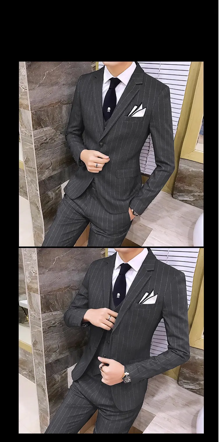 Color: black, Size: XL - Gray Men Classic Striped/Checked Suits, Business Office 3 Piece, Asian Size Slim Fit Men Dress Jacket & Pants with Vest, S-4XL
