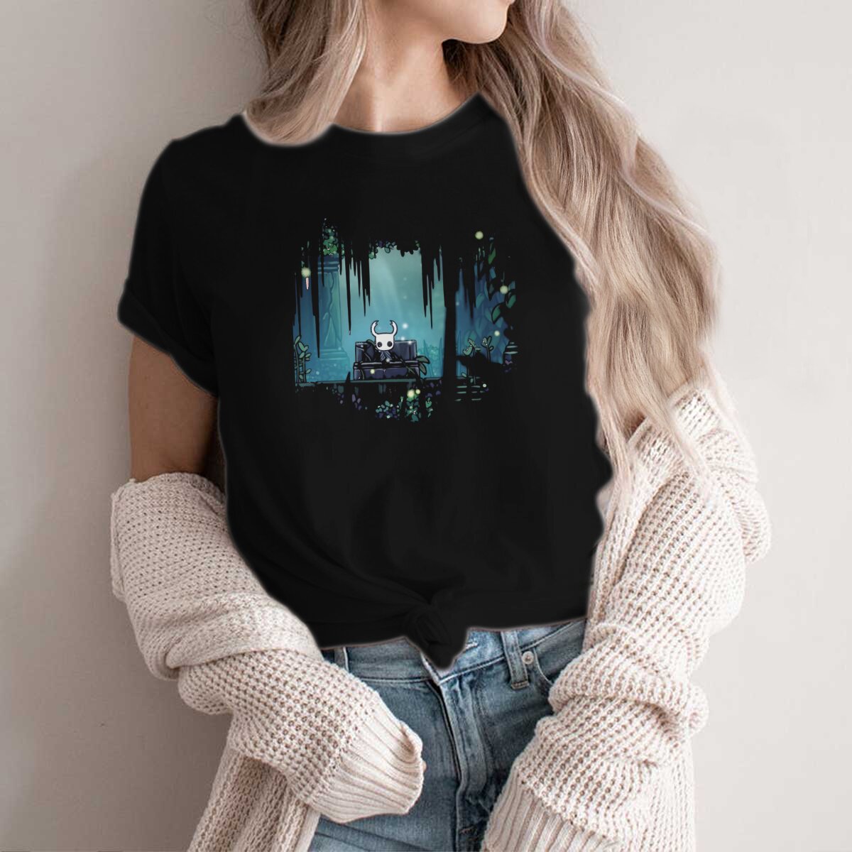 Color: black, Size: XL - Green Graphic Polyester TShirt Hollow Knight Creative Tops Casual T Shirt Female
