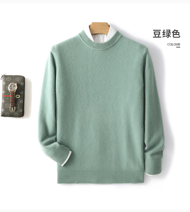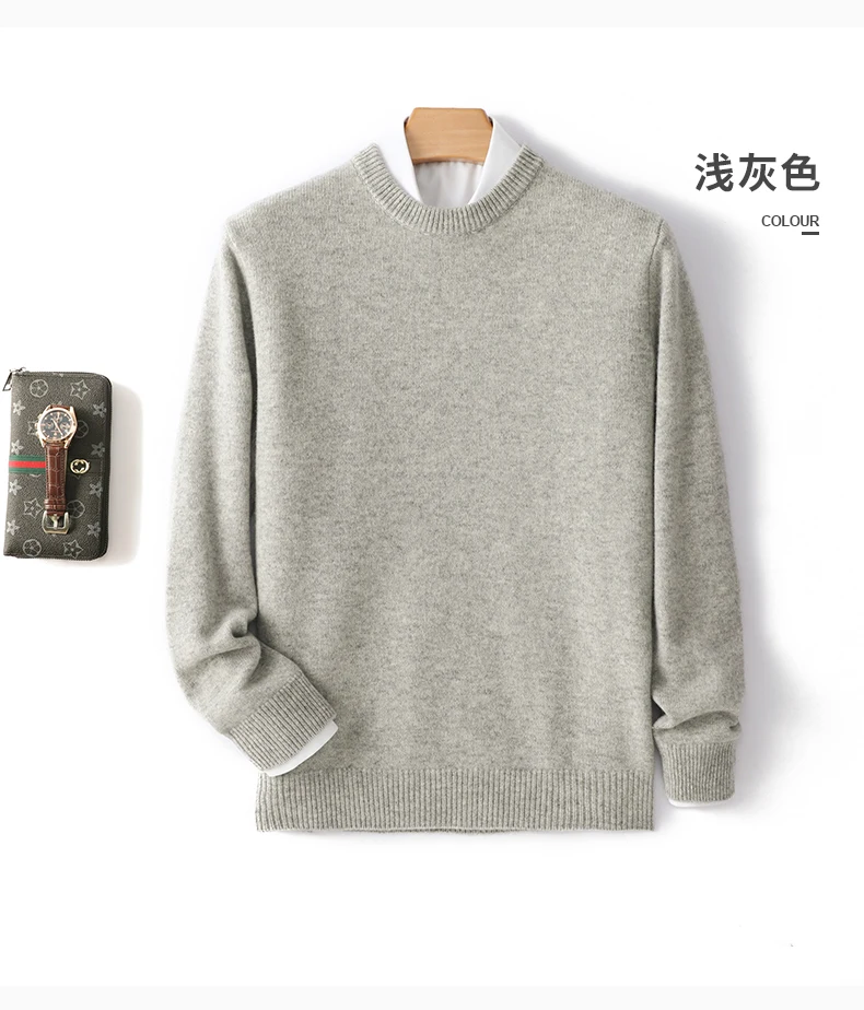 Color: black, Size: XL, Ships From: CHINA - Men's 100% Pure Wool Cashmere Sweater O-Neck Pullover Knit Sweater Autumn and Winter New Long Sleeve High-End Jumpers Thick Tops