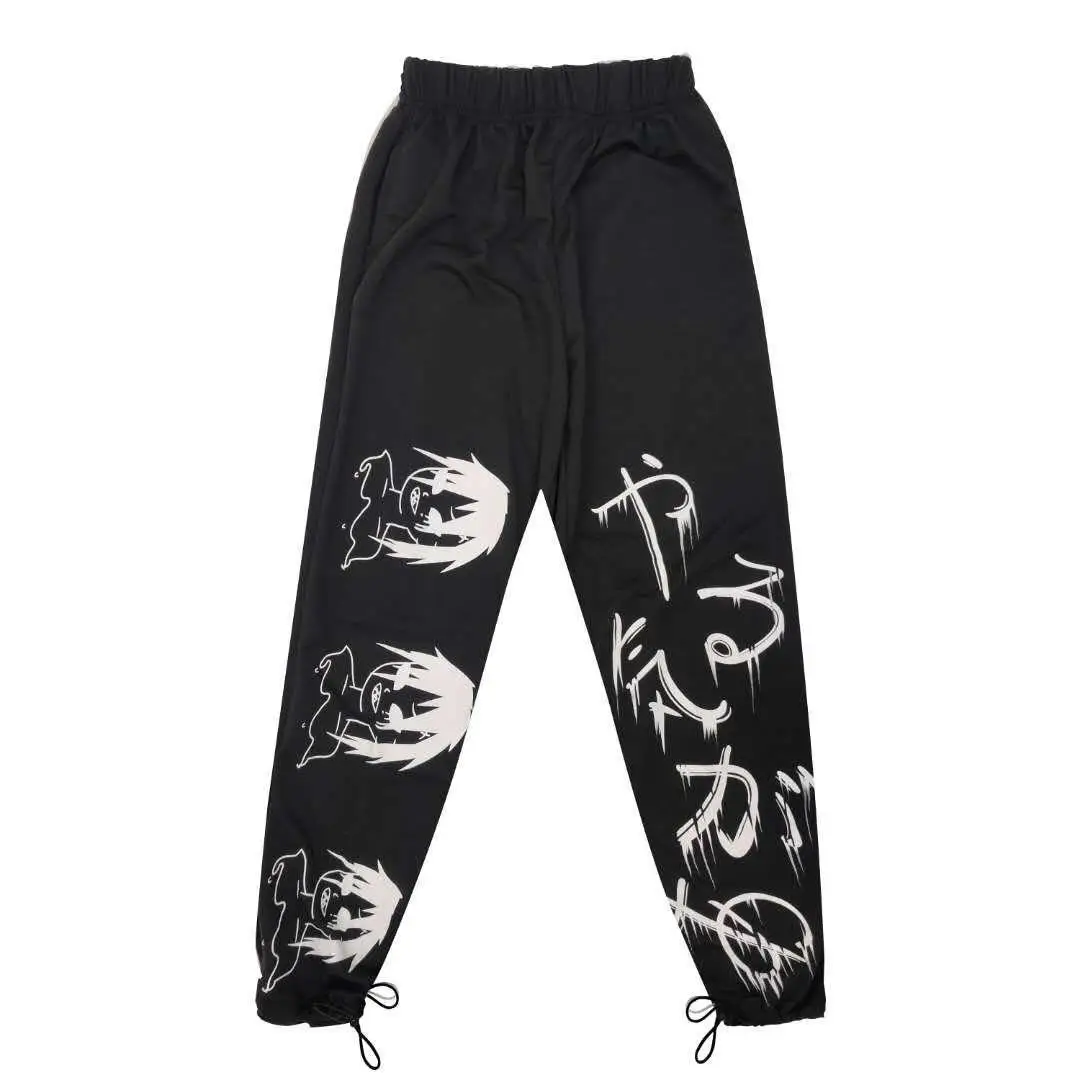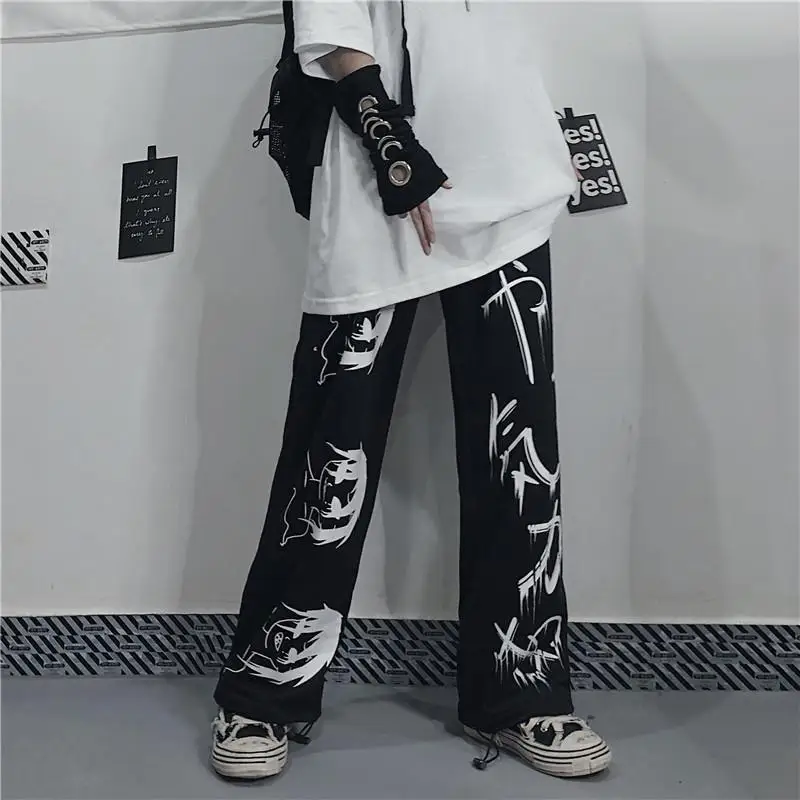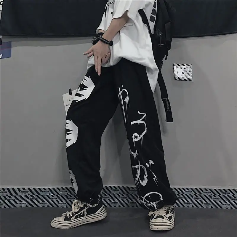 Color: black, Size: XXL - Black Japenese Printed Anime Y2k Sweatpants Male Streetwear Wide Leg Oversize Baggy Pants Casual Sport Causl Trousers Men 2023