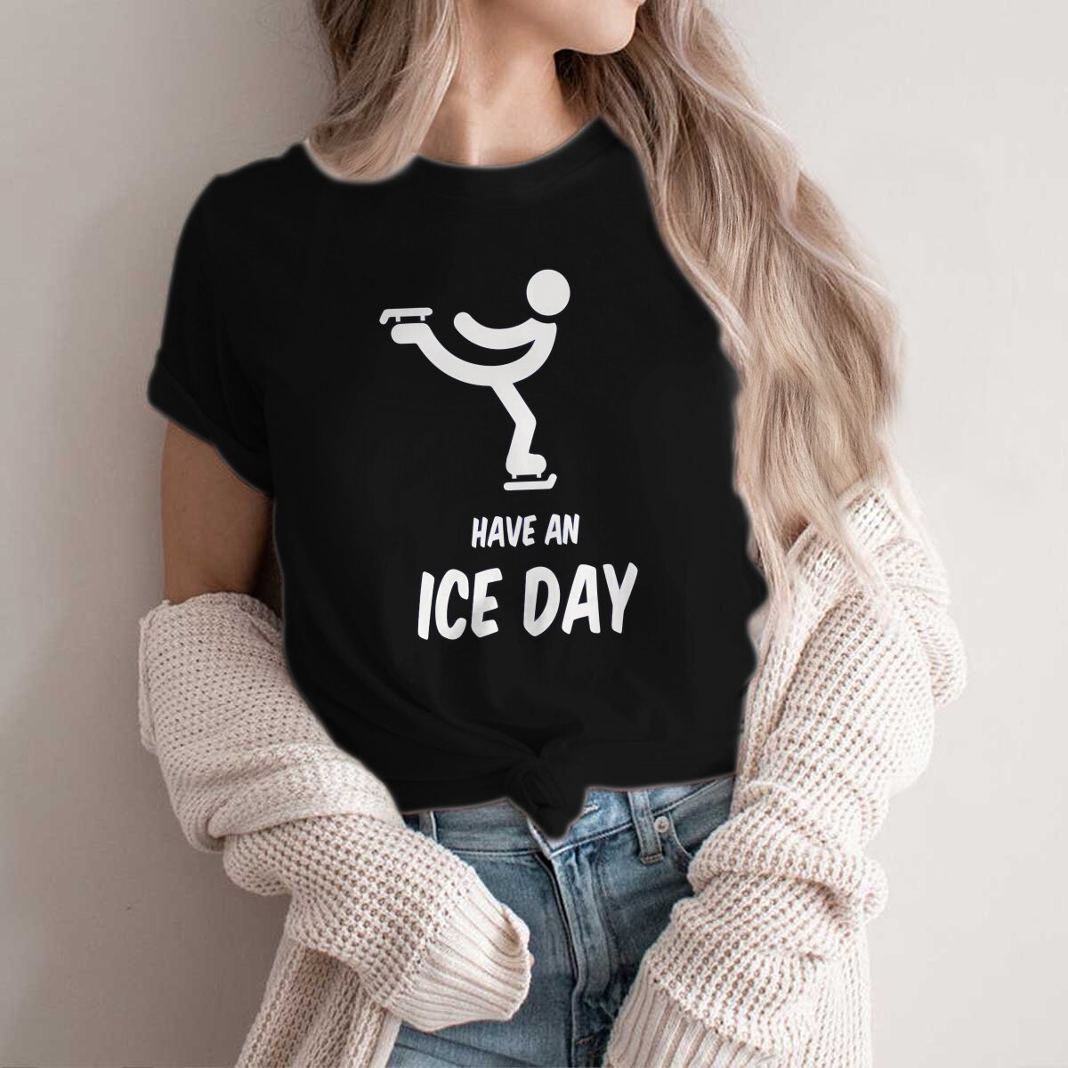 Color: black, Size: XXL - Have An Ice Day Round Collar TShirt Figure Skating Classic T Shirt Women Tops New Design
