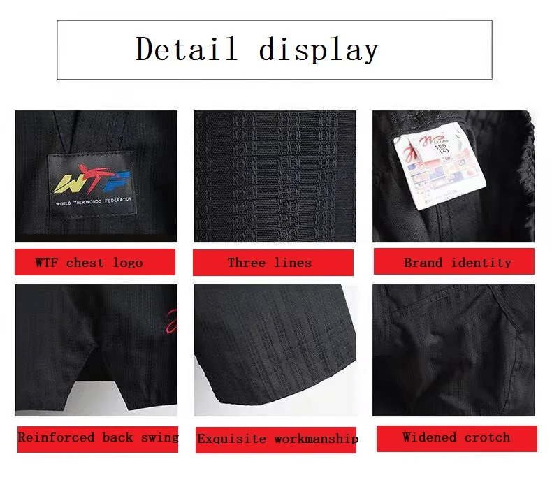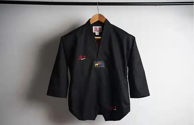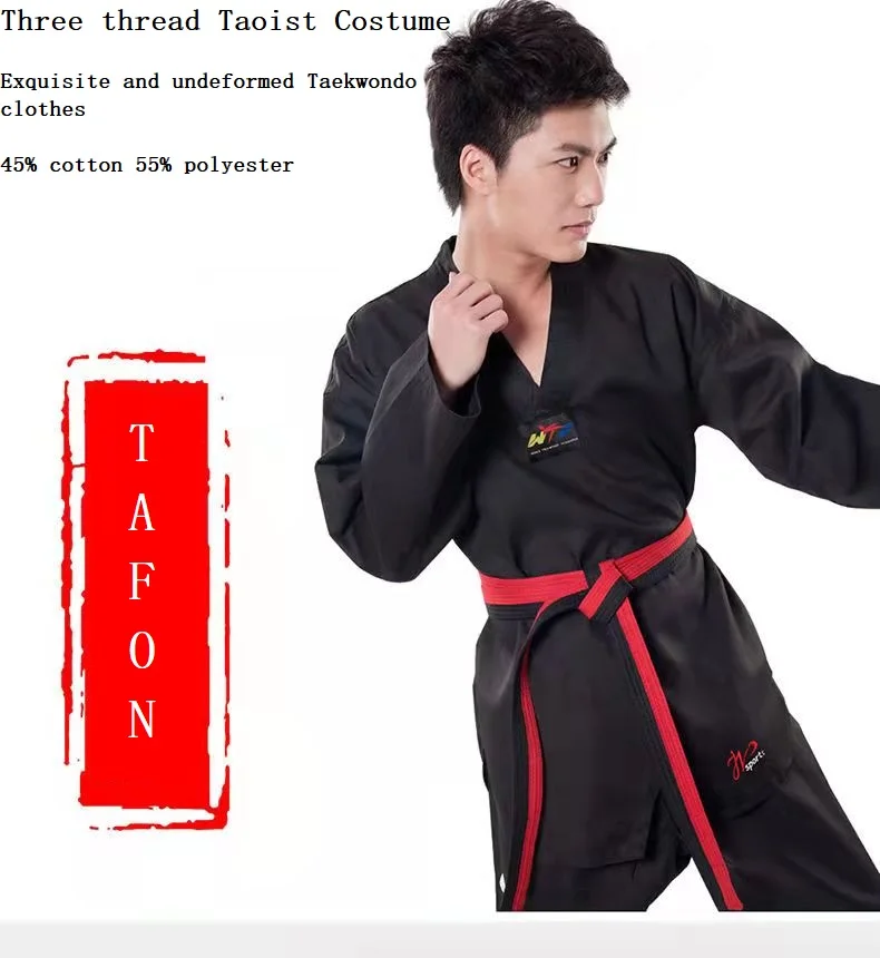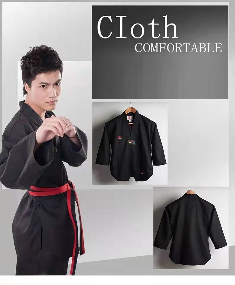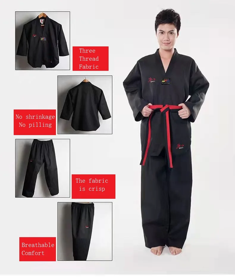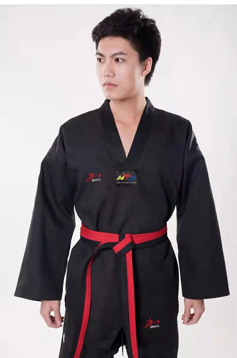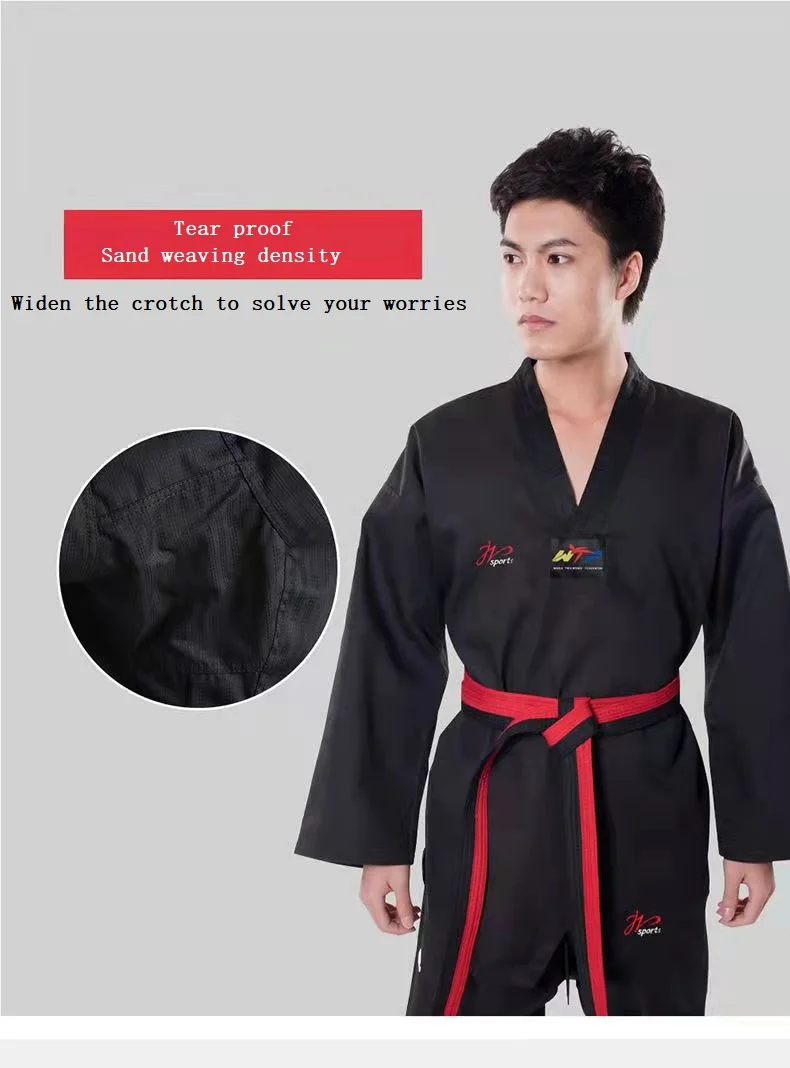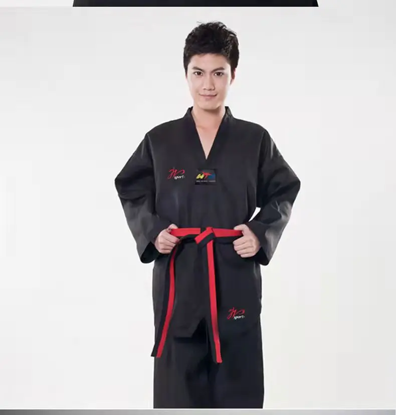 Color: Black, Size: XXL - High Quality Black Taekwondo Dobok Training Taekwondo Suits Embroidery Uniforms Poomsae Dobok WTF Approved Size 140-190cm