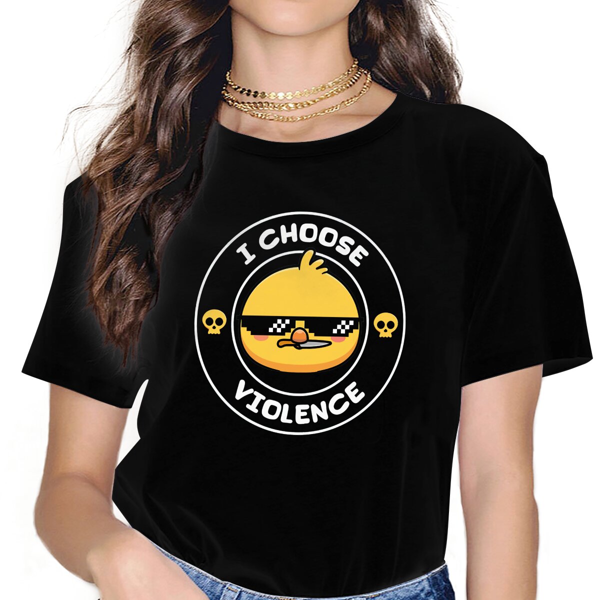 Color: black, Size: XXL - Sunglasses Style Polyester TShirt I Choose Violence Funny Duck Comfortable New Design Gift Idea T Shirt Stuff
