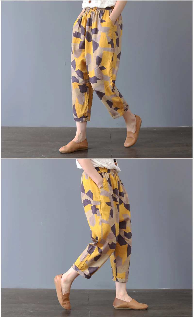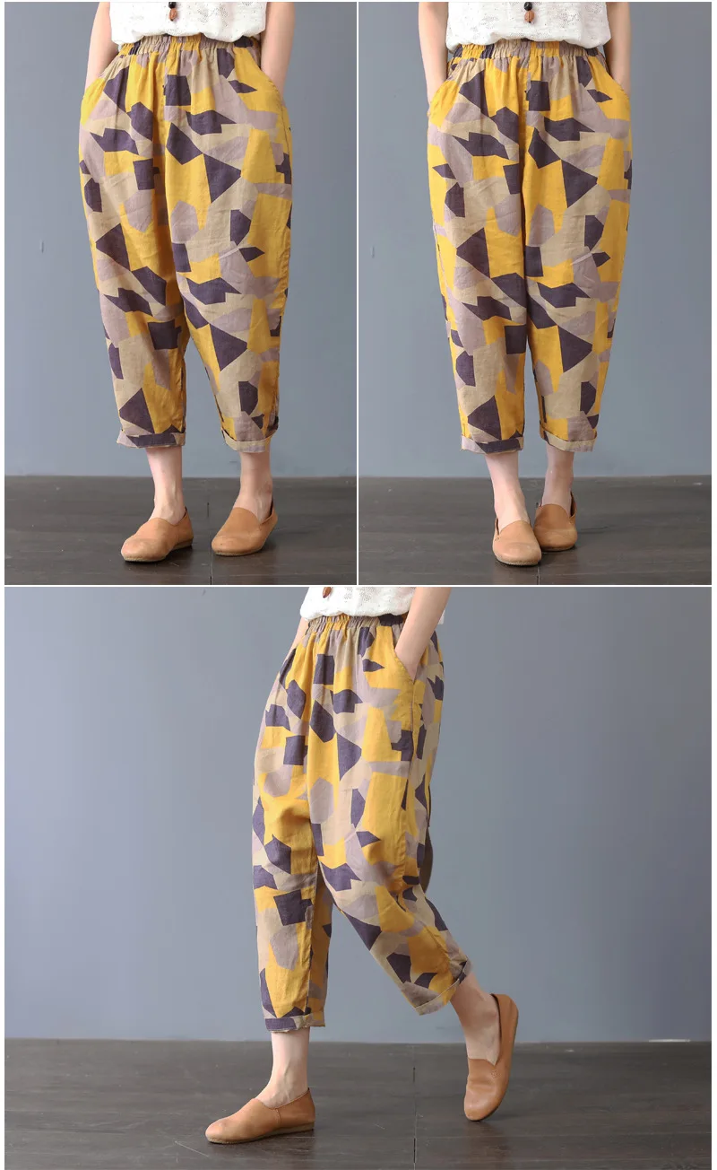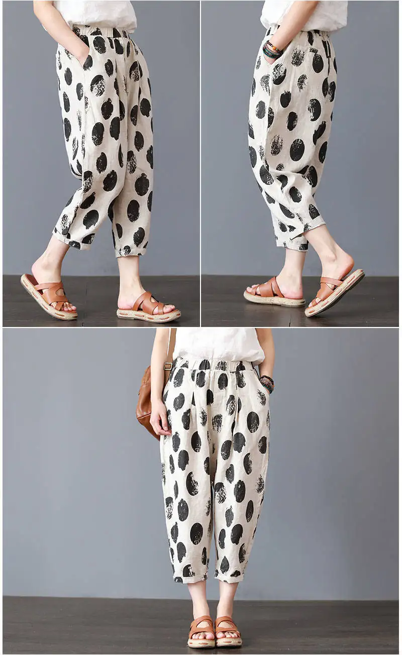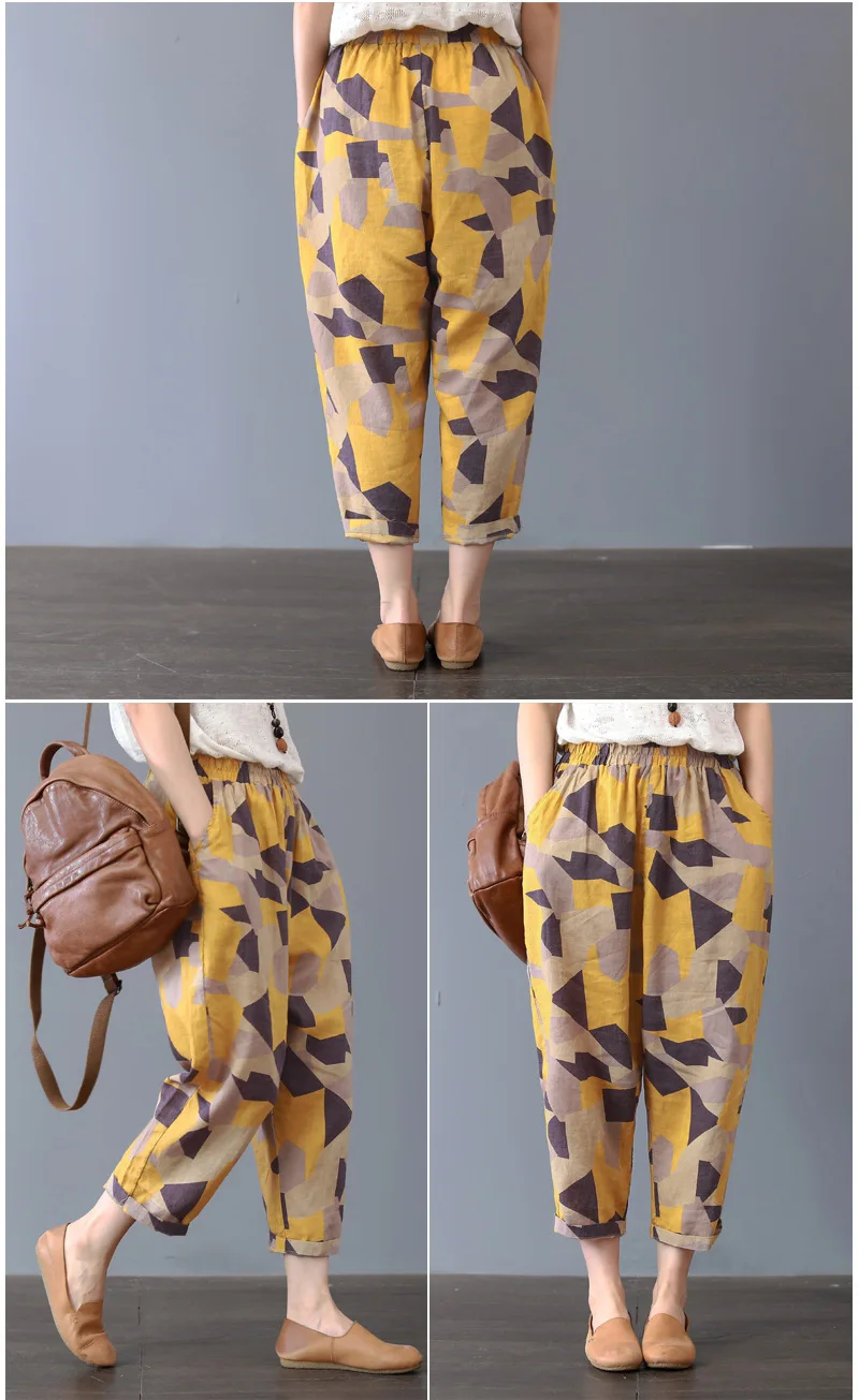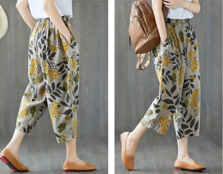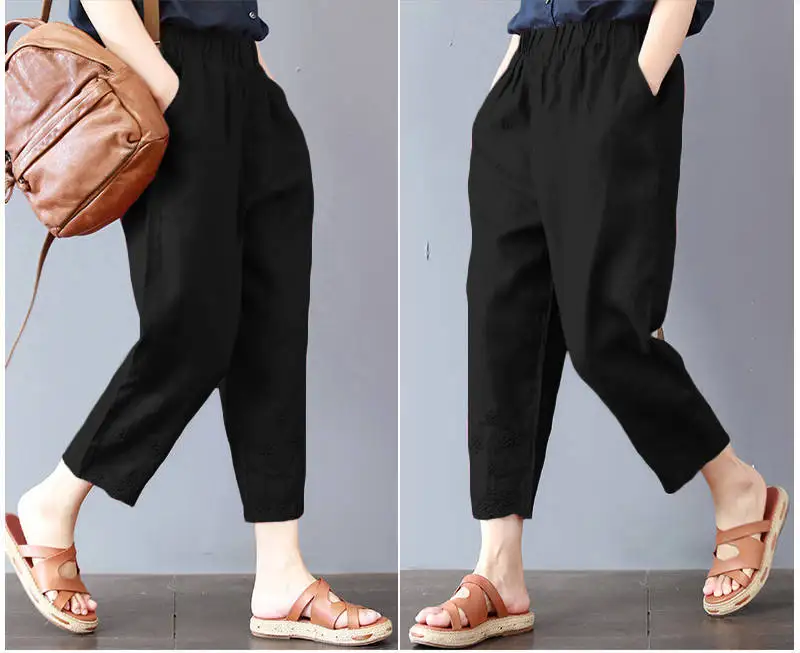 Color: black, Size: XXXL - Cotton and Linen Pants for Women Summer Printing Harem Pants Female Mother Loose Retro Fashion Women's Ankle Length Pants