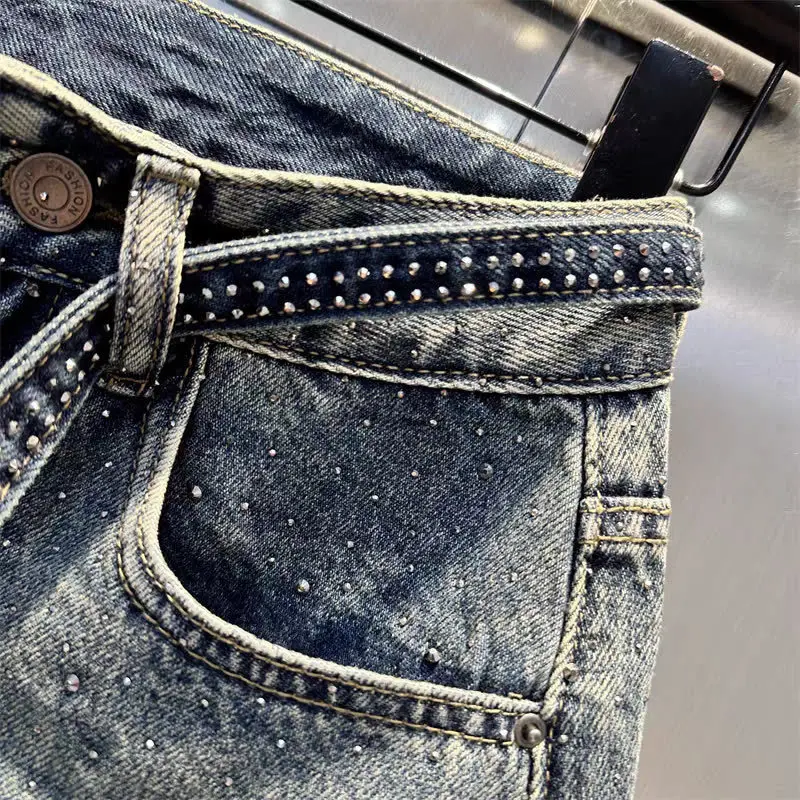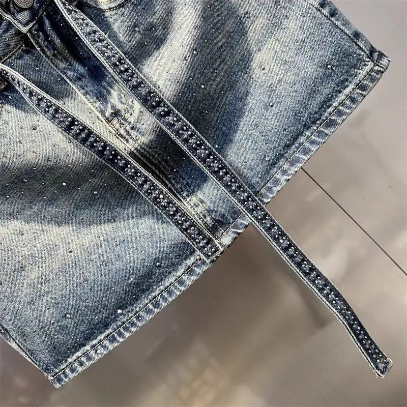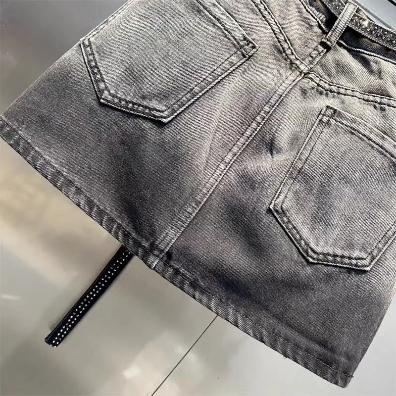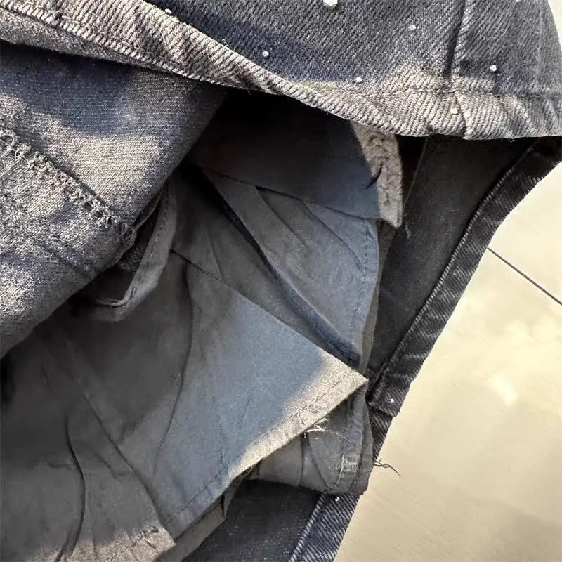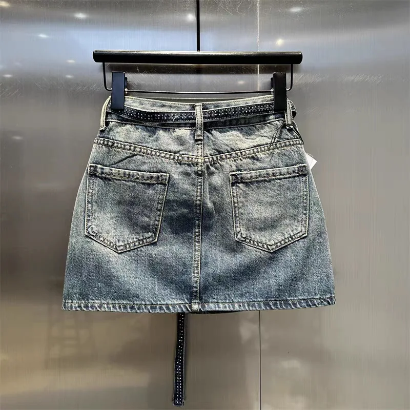 Color: black, Size: XXXL - Oversize Retro Diamond Denim Mini Skirt for Women Summer High Waist Shiny Rivet Slim Skirts Gradient Black Grey Jean Skirts