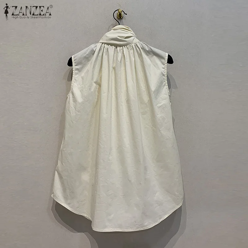 Color: black, Size: XXXL - ZANZEA Women Fashion Bow Tie Neck Tank Tops 2024 Summer Casual Solid Sleeveless Blusas Mujer Elegant Korean Style Shirts Blouses