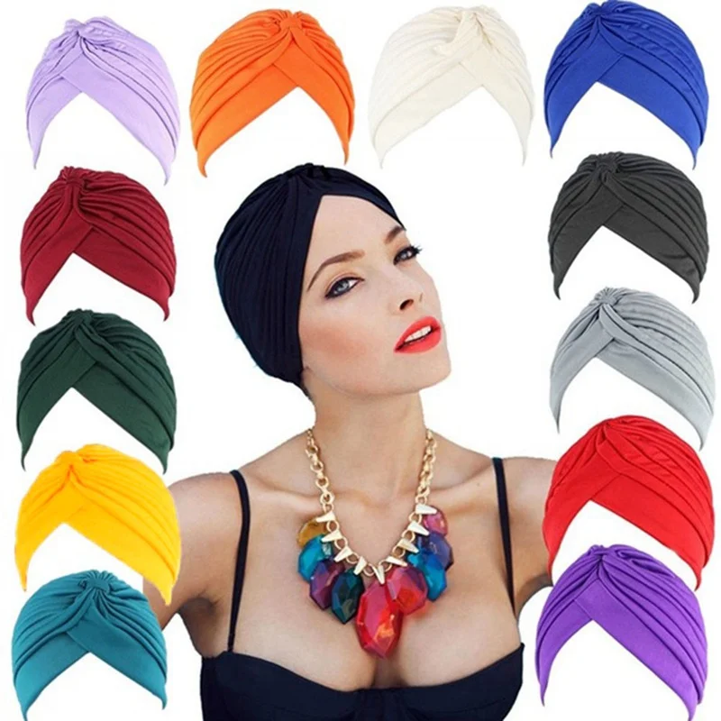Color: black - Solid Color Turban Hat Women Muslim Stretch Hijabs Hats Islamic Underscarf Head Wrap Cap Female Plain Headwear Headband Soft