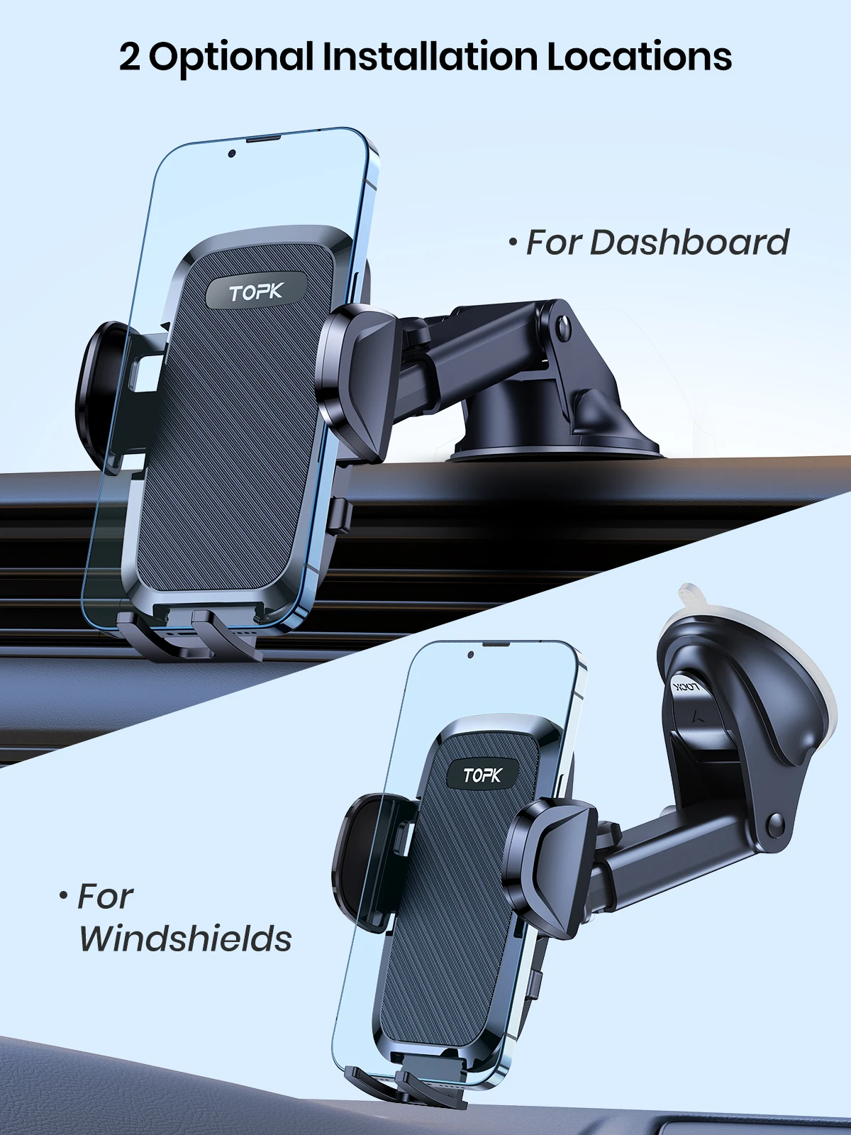 Color: black - TOPK Car Phone Holder 4 in 1 Super Stable Car Phone Mount for Car Dashboard/Windscreen/Air Vent Compatible with All Mobile Phone