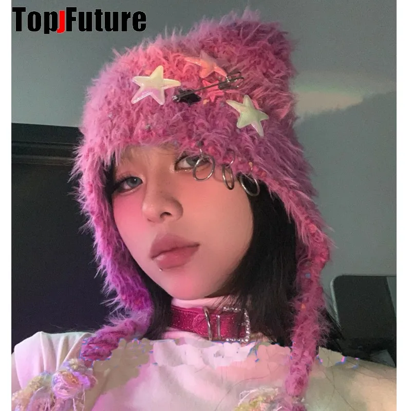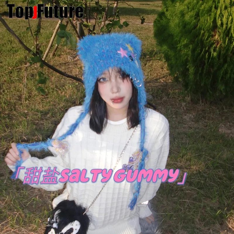 Color: black - Y2K girl Harajuku Gothic Lolita cat Ear Hat Women Punk Designer Winter Beanie Hat Gothic lolita streetwear StarAccessories Cap