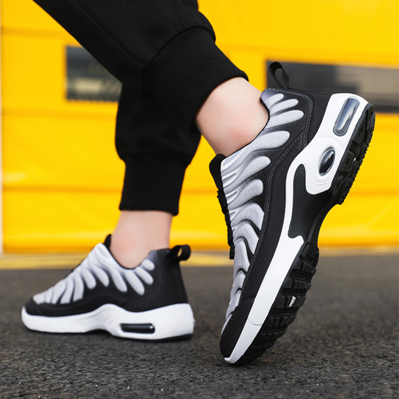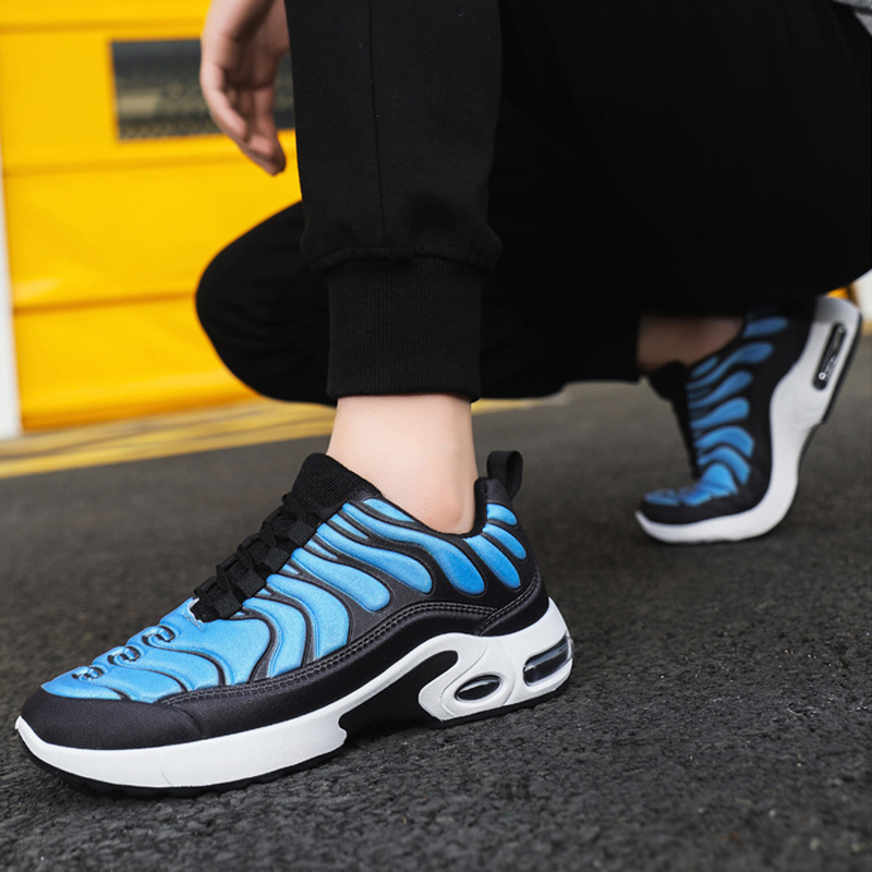 Color-blocked Sneakers Men Personalized Fashion Lace Up Air Cushion Sports Shoes Casual Outdoor Running Walking Shoes
