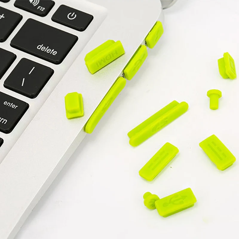 Color: Blue - 12pcs/set Silicone Data Port Anti Dustproof Plug For Apple Macbook 11Air 13Air 13 Pro dust plug Stopper Cover Set For Laptop
