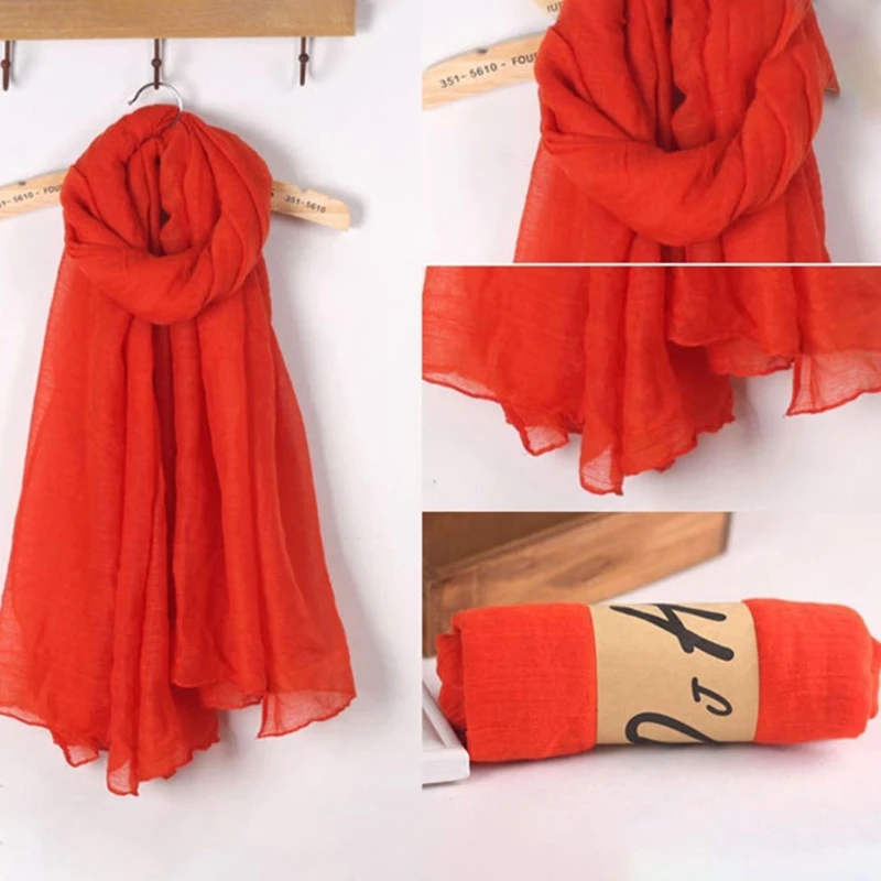 Color: Blue - 652F Women Solid Color Scarfs Large Long Lightweight Headscarf Linen Sheer Shawl Wrap