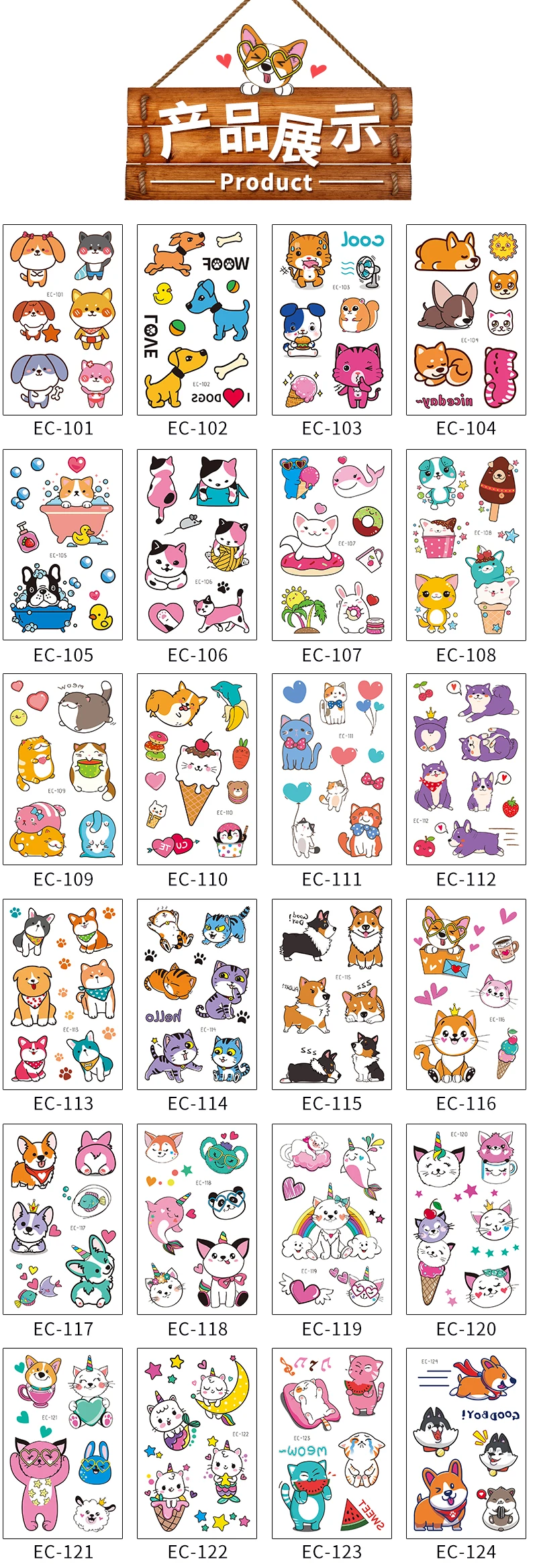 Color: Blue - Cartoon Animal Waterproof Temporary Tattoo Cute Pet Cats and Dogs Tattoo Stickers Children Boy Girl Fake Body Art Flash Tatoo