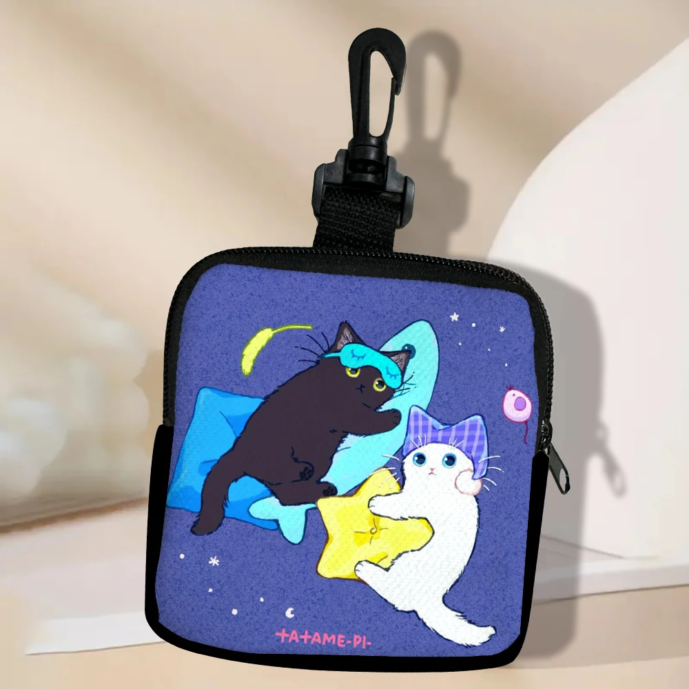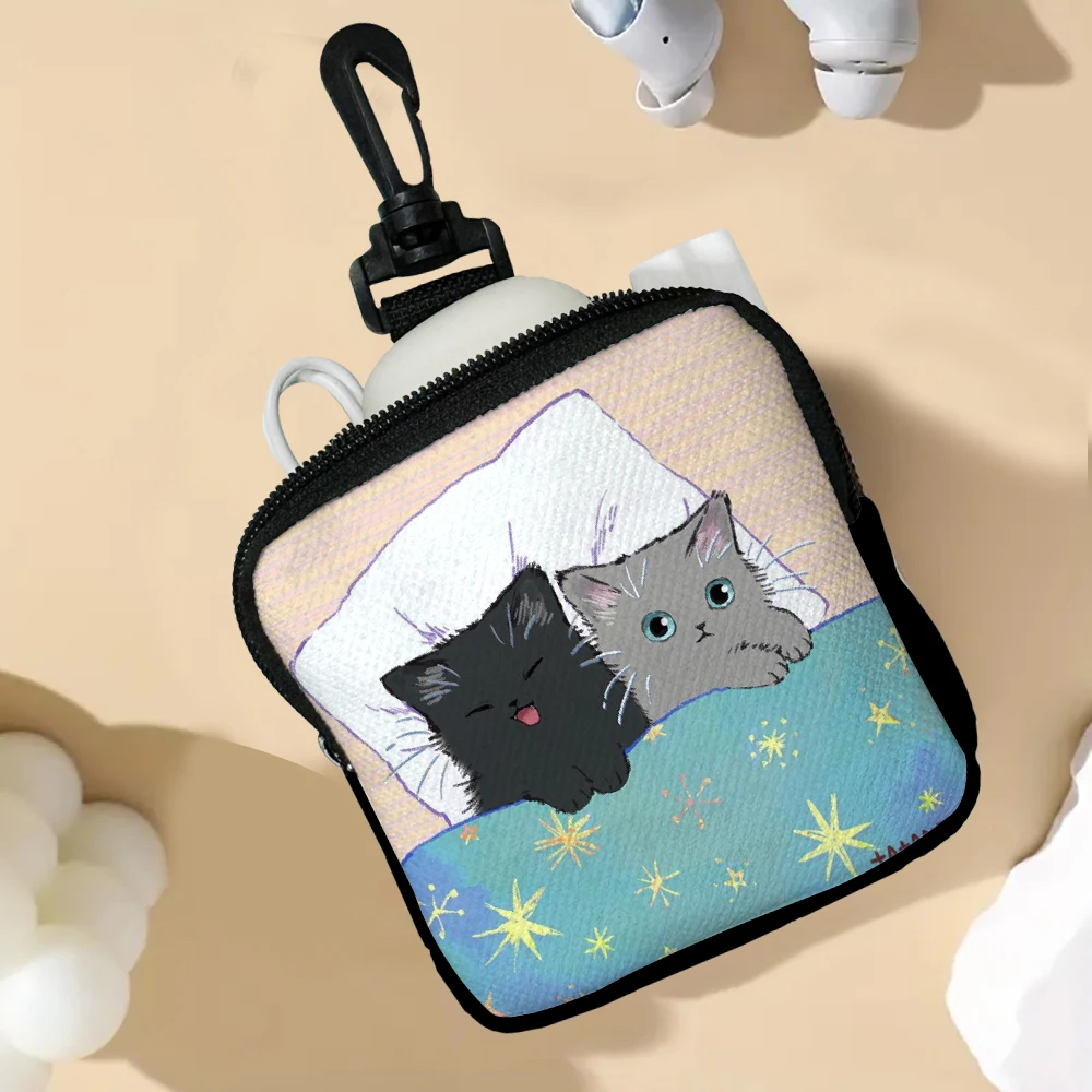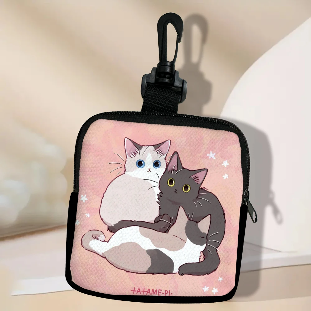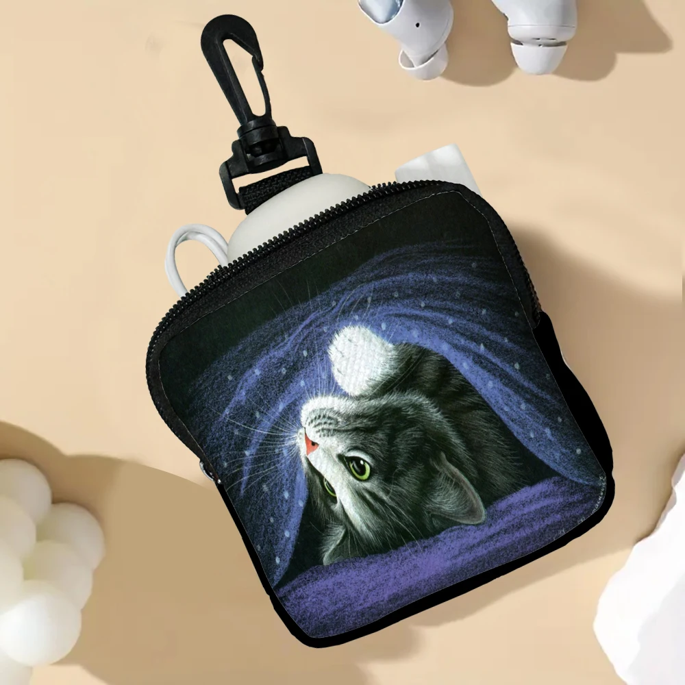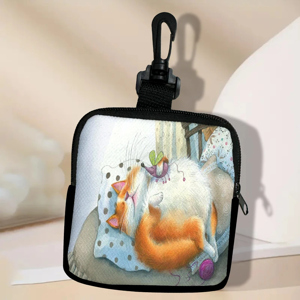 Color: Blue - Cat Mini Coin Purse Simple Zipper Kid Storage Pouch Coin Key Bag Women Men Wallet Mini Purse 7.2