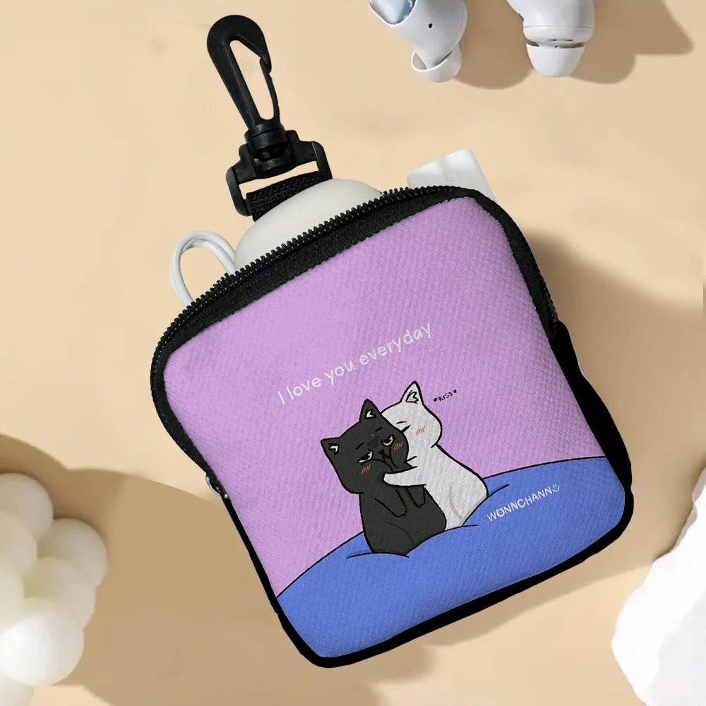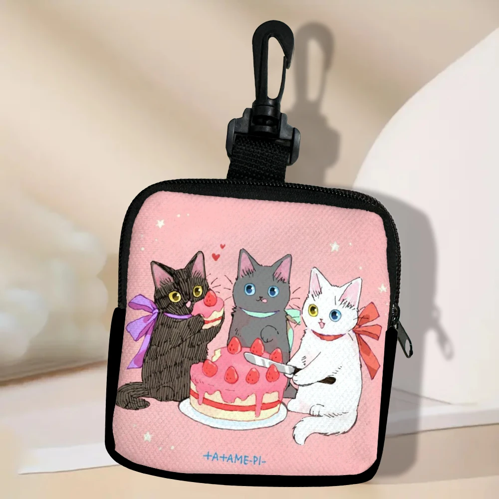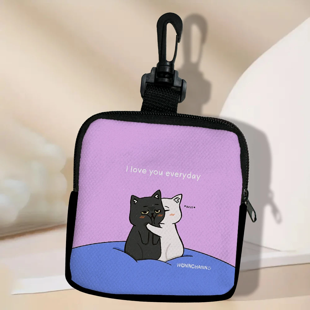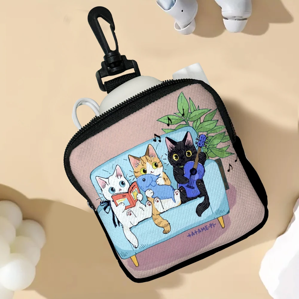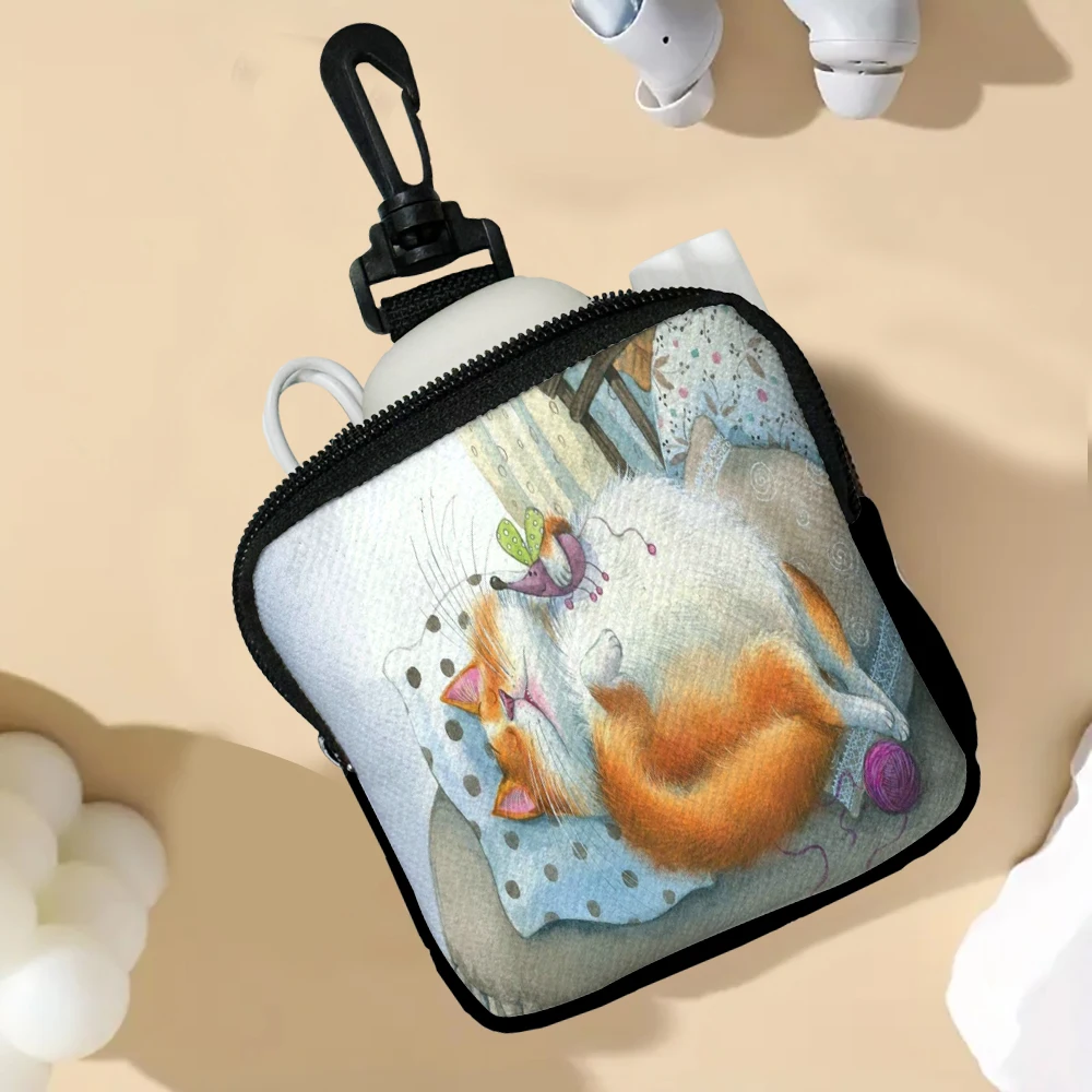 Color: Blue - Cat Mini Coin Purse Simple Zipper Kid Storage Pouch Coin Key Bag Women Men Wallet Mini Purse 7.2
