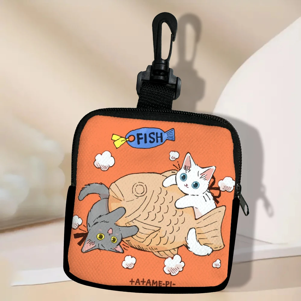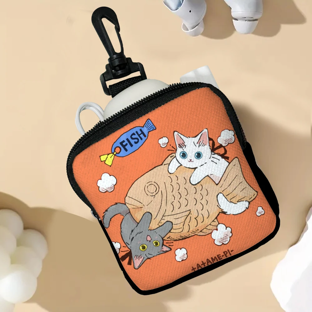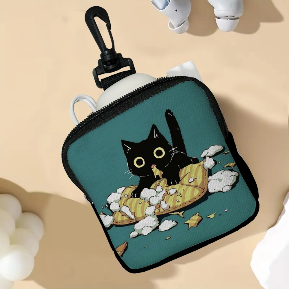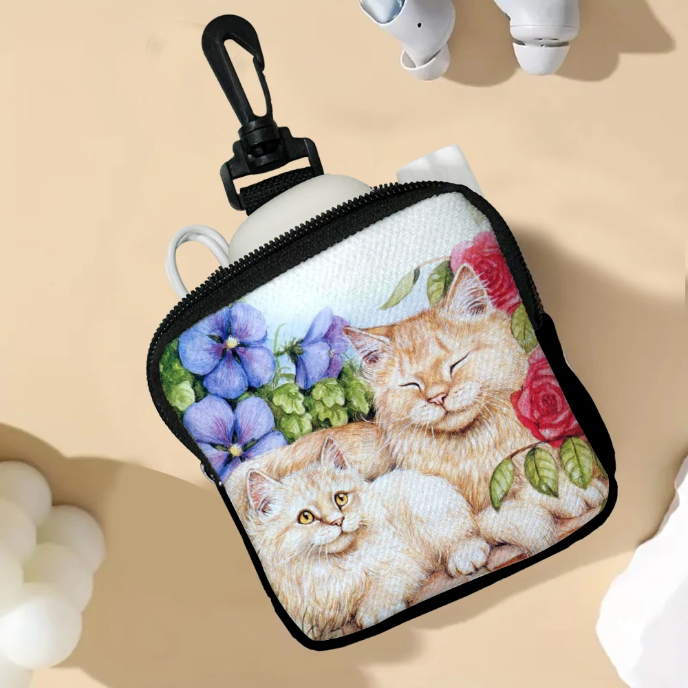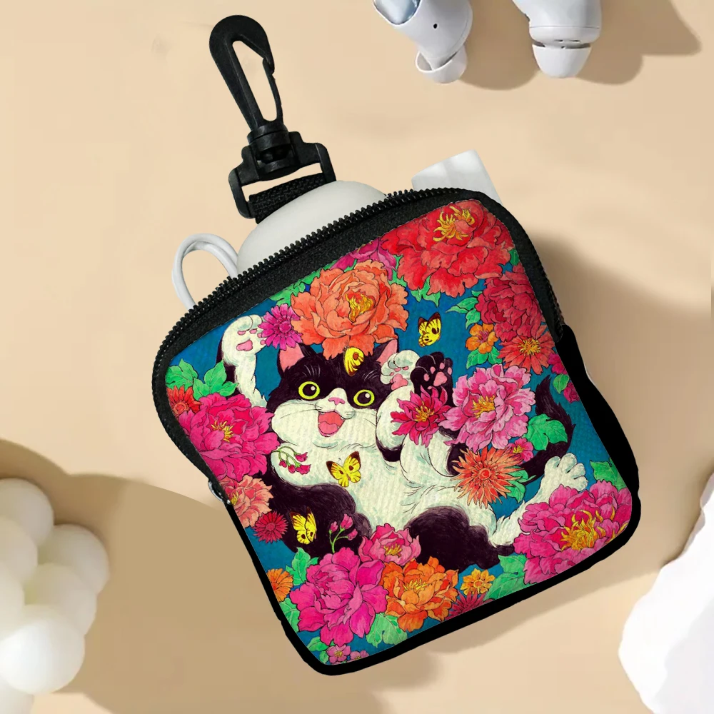 Color: Blue - Cat Mini Coin Purse Simple Zipper Kid Storage Pouch Coin Key Bag Women Men Wallet Mini Purse 7.2