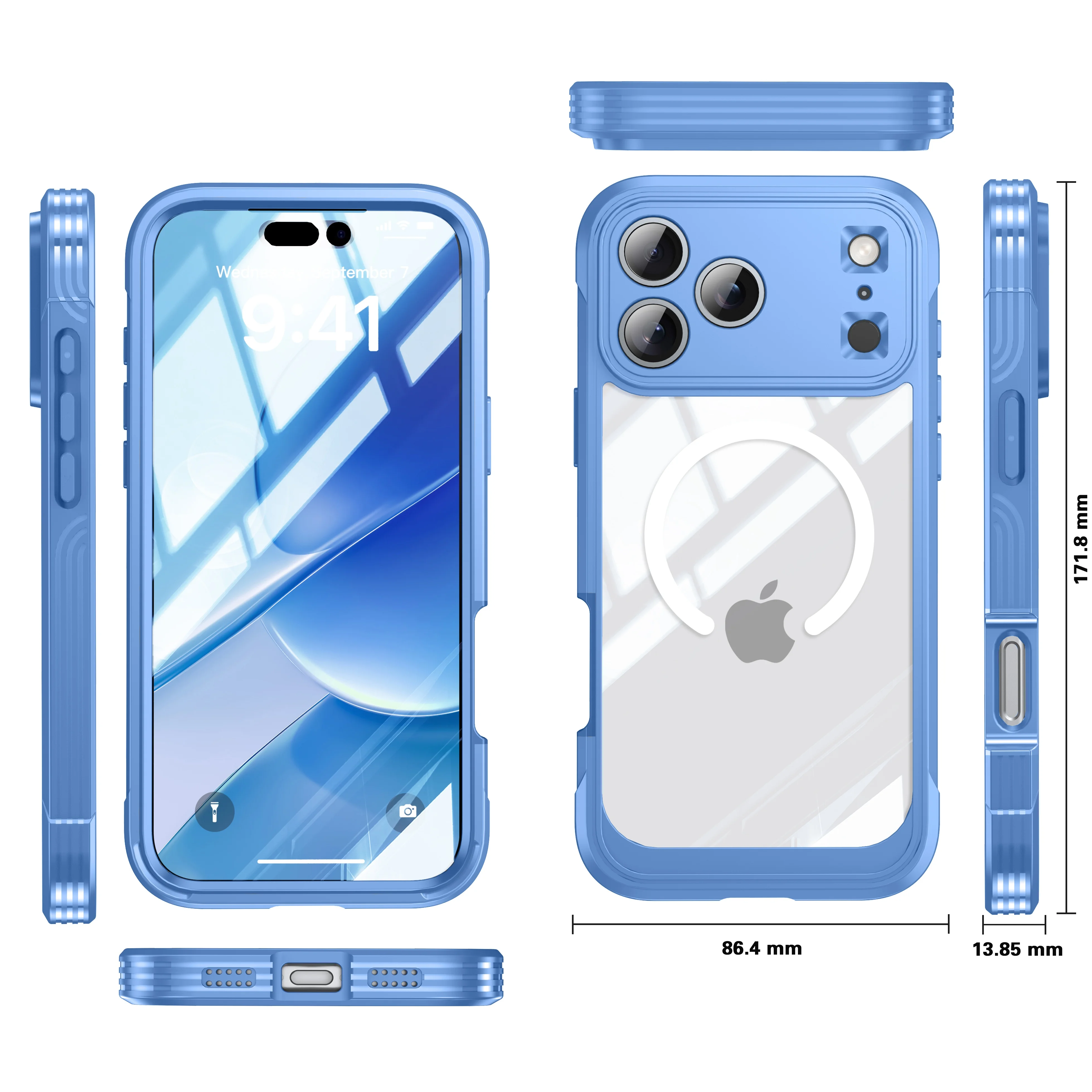 Color: Blue, Compatibility by Model: iPhone17 Pro - Shellbox-For iPhone17promax/17Air phone case, drop-resistant, ultra-thin transparent magnetic, scratch-resistant and wear-resist