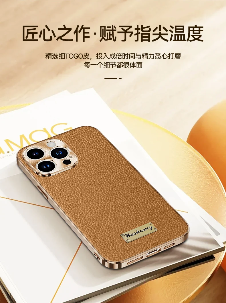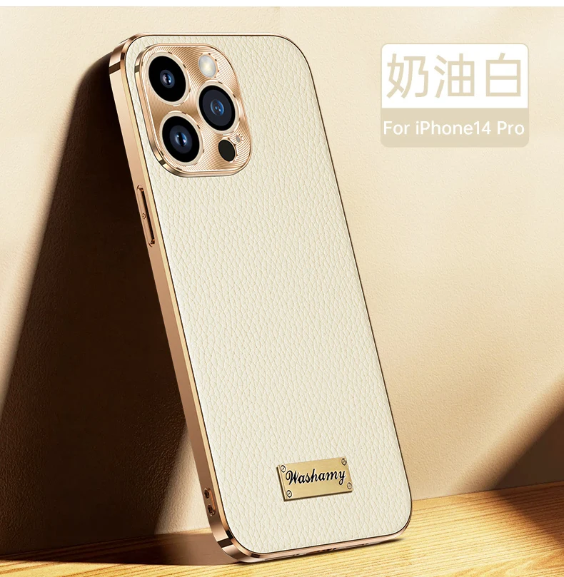 Color: Blue, Compatible-Phone Models: For iPhone 13 Pro Max - Luxury Genuine Leather Phone Case For iPhone 15 14 13 Pro Max Plating Soft Silicone Frame Shockproof Cover For iPhone 16 Pro Max