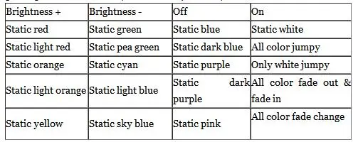 3) Adopt RF led controller, which has 24 buttons, the function of each button as the table below: