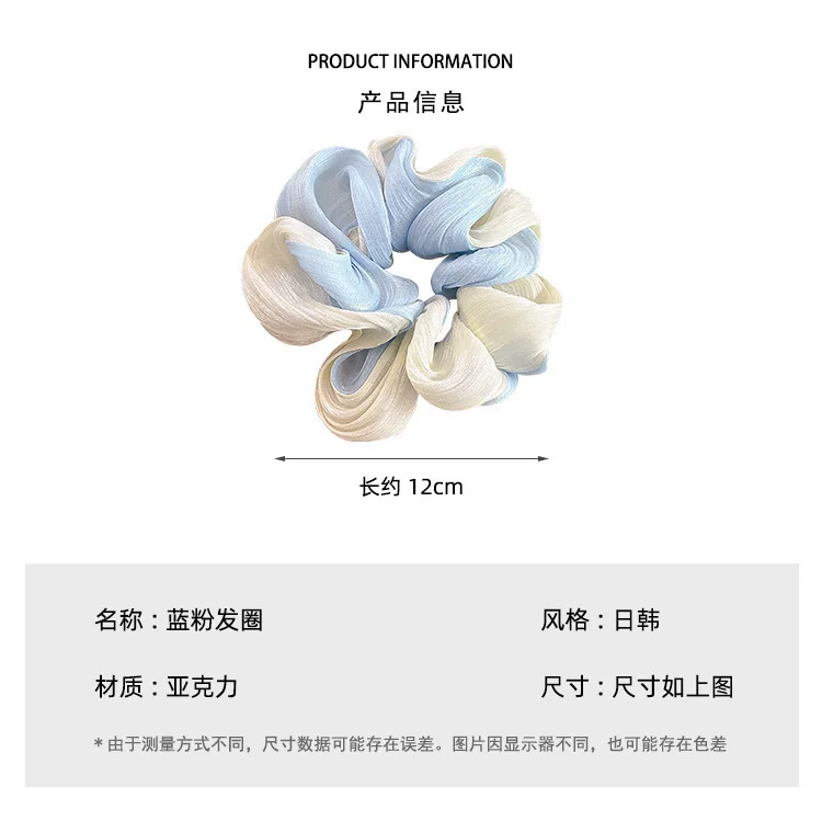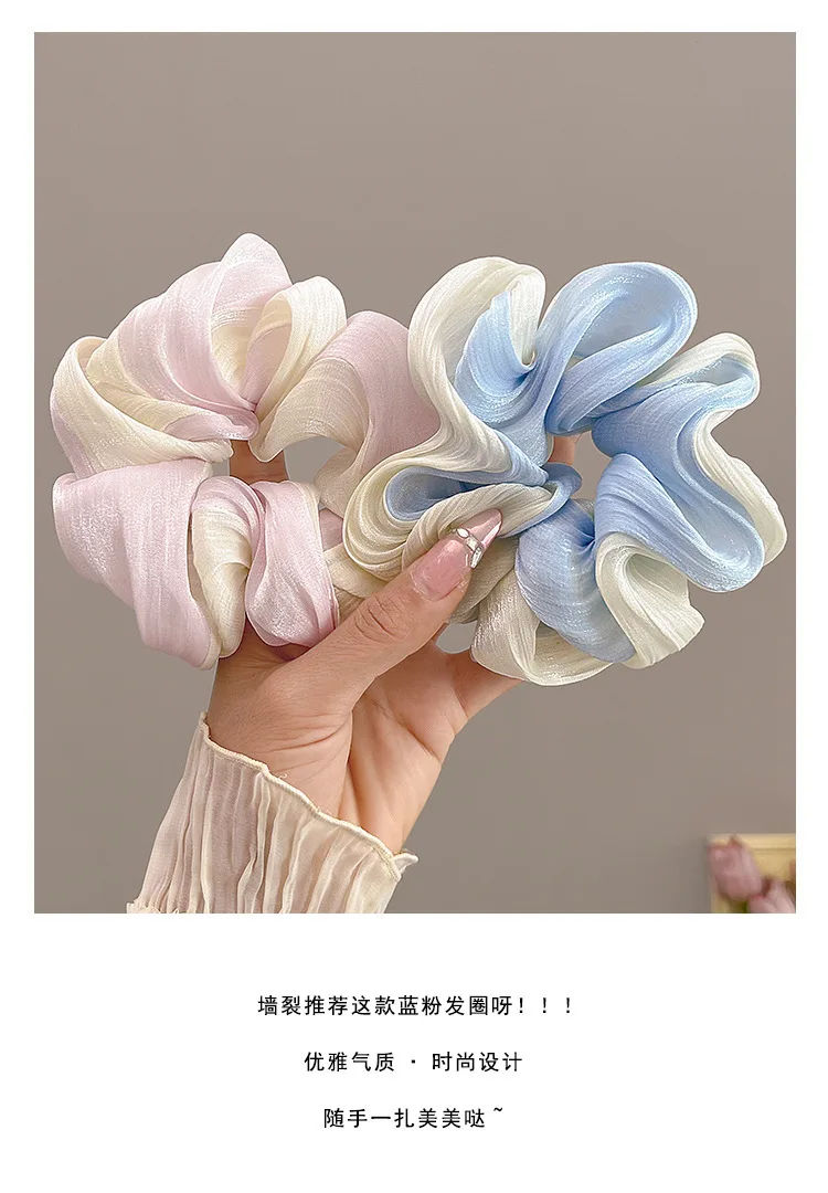 Color: Blue - Gradient Color Pink Blue Scrunchies Sweet Mesh Hair Ties Ropes Women College Student Oversized Hair Bands Cute Ponytail Headwear