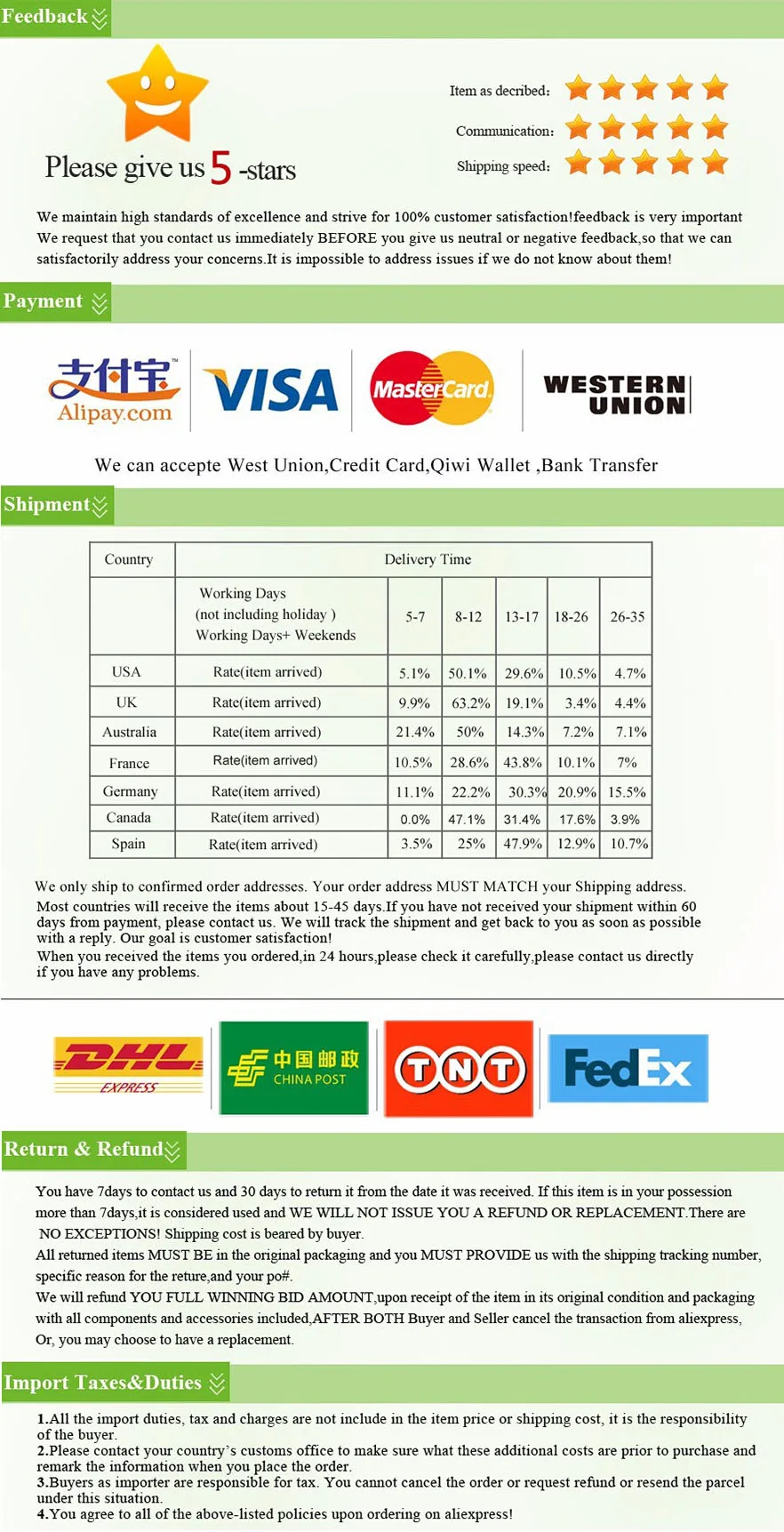 If you have any problems, please contact us before open the dispute or give negative feedback,we will try our best to help you,thank you!