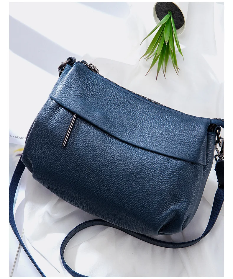 Color: Blue - High Quality Real Leather Handbag Ladies' Genuine Leather Shoulder Bags Women's Casual Messenger Bags Versatile Crossbody Bag