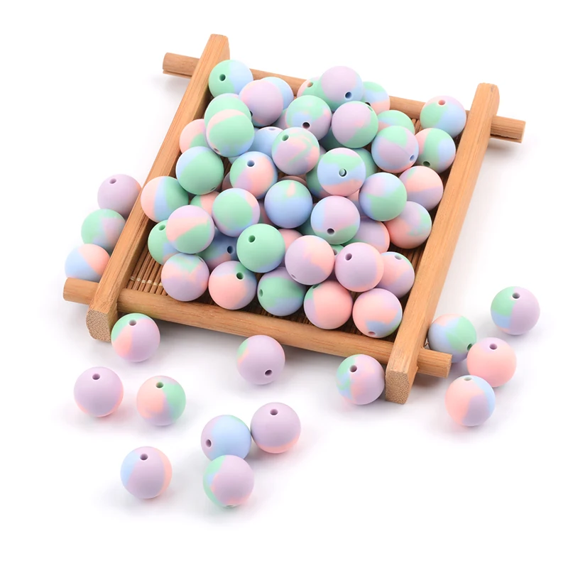 Color: Blue, Item Diameter: 12mm - LOFCA 100Pcs/lot 12MM Round Shape Silicone Teething Beads Baby Teether For DIY Nursing Necklace Food Grade Chew Beads
