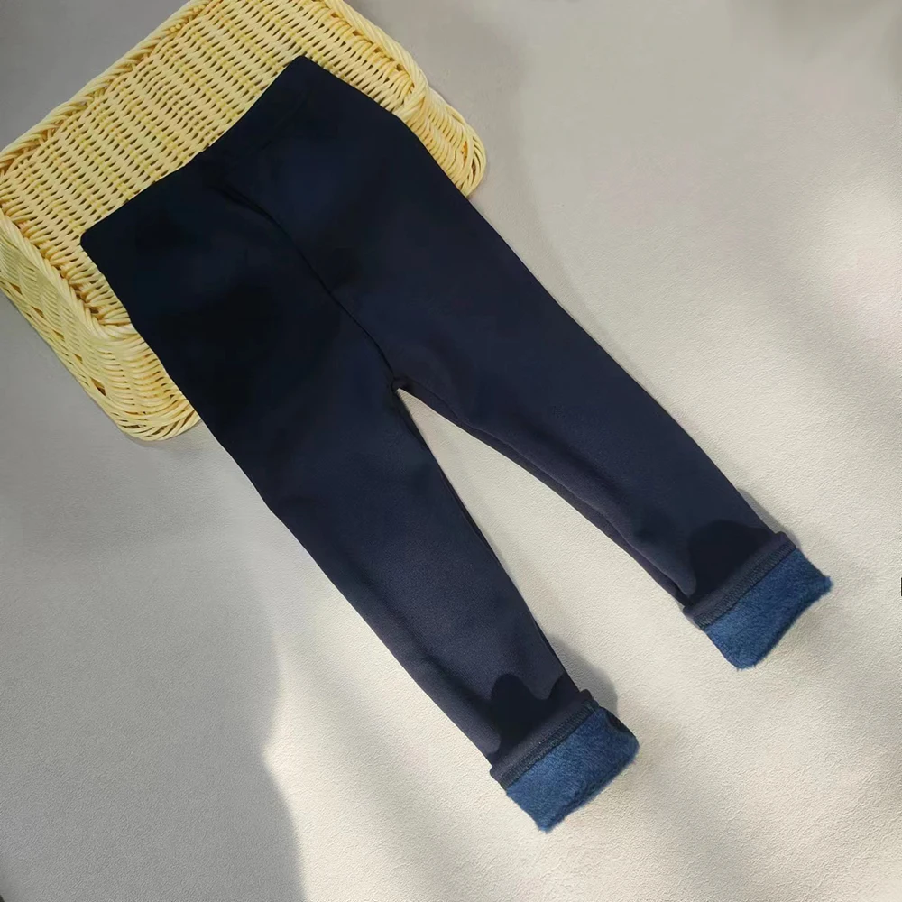 Color: Blue, Kid Size: 4T - 2024 Girls' Pants Children's Winter Thickened Warm Pants Warm Elastic Pink Navy Blue Underpants Boys' Pants