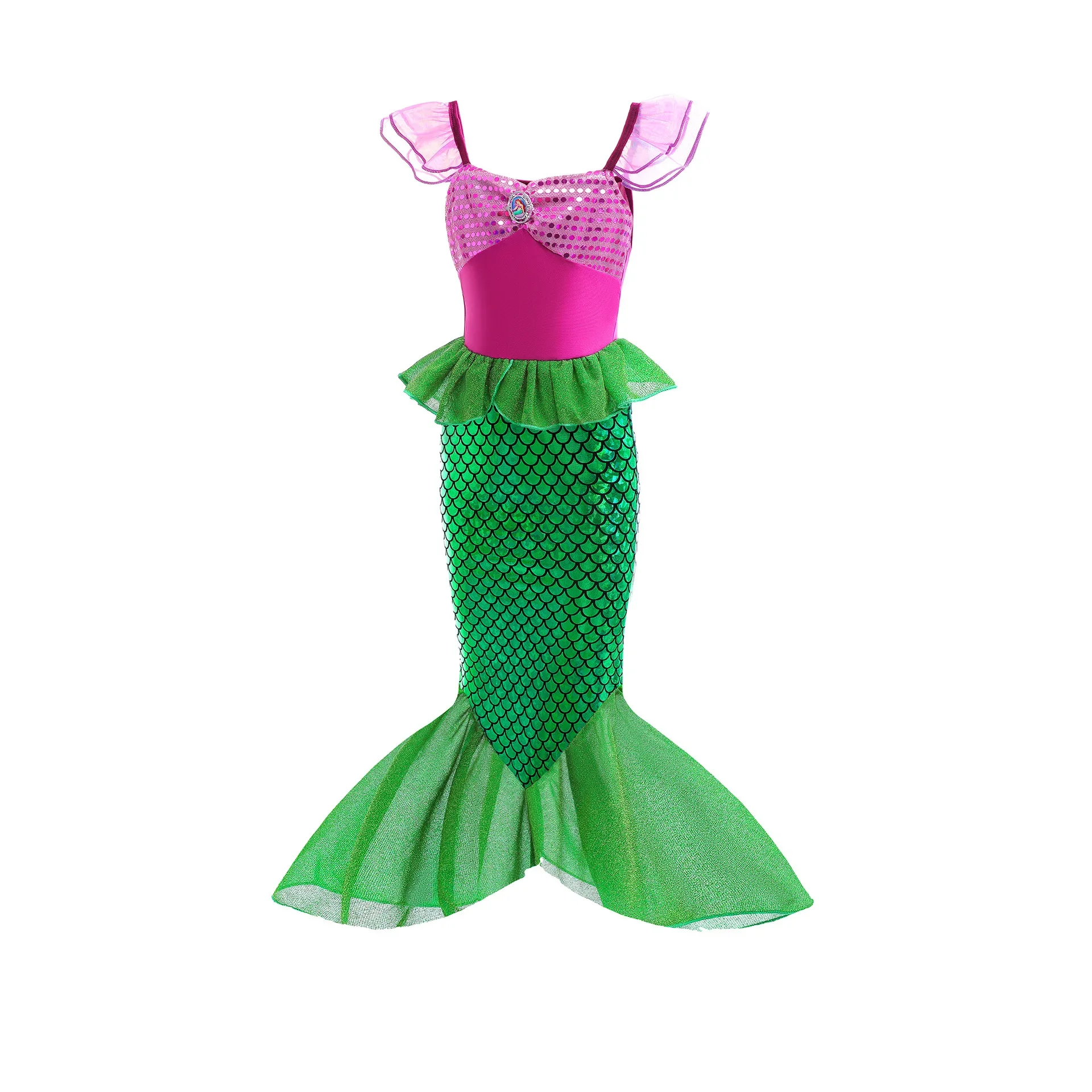 Color: Blue, Kid Size: 5 - Disney Little Mermaid Ariel Costumes for Girls Princess Dress Cosplay Halloween Carnival Kids Birthday Party Dress Up Clothing