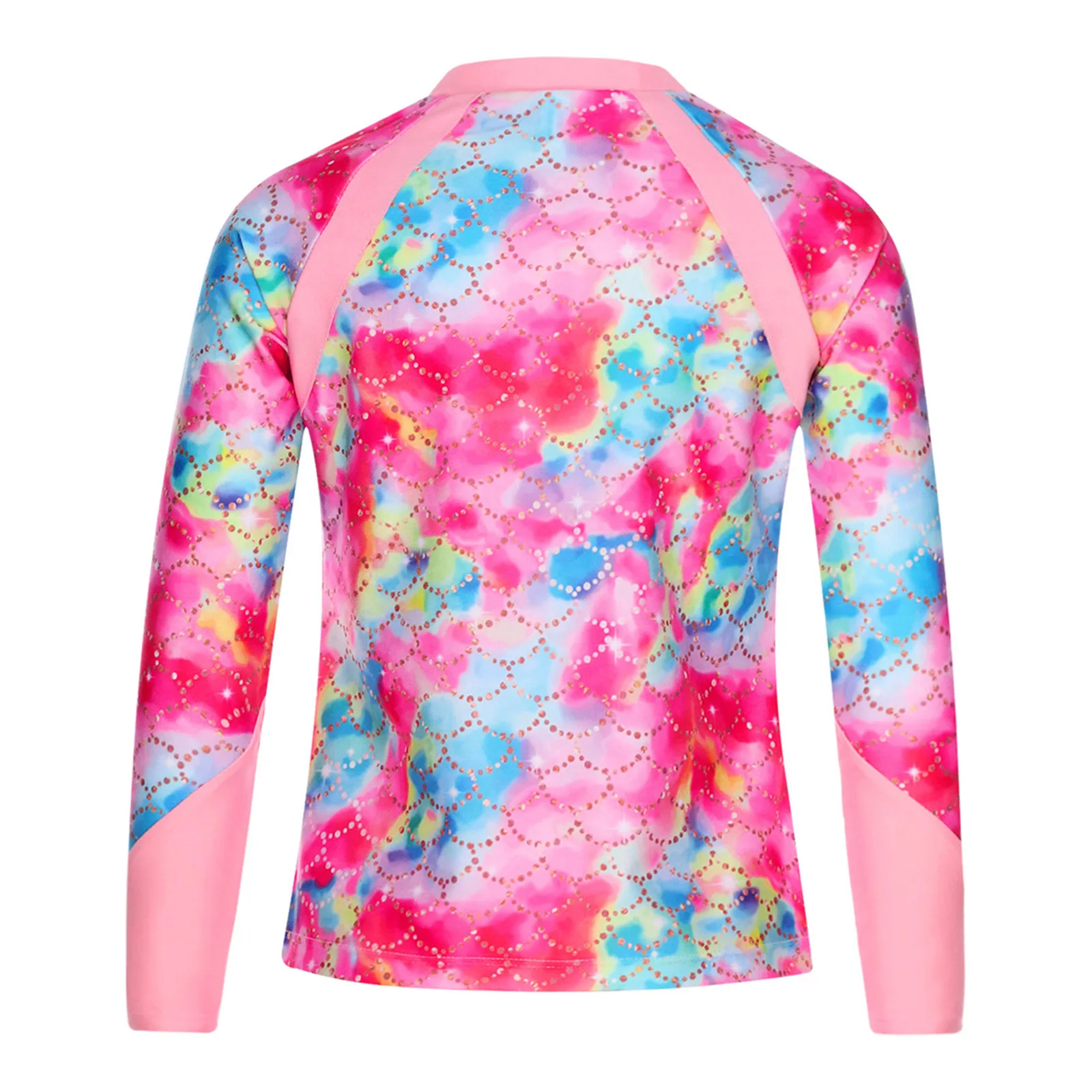 A long sleeve swim top for girls, vibrant print makes girls looks more energetic and beautiful at beach.