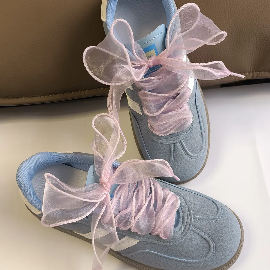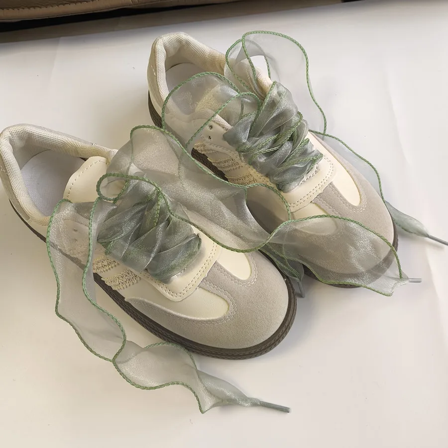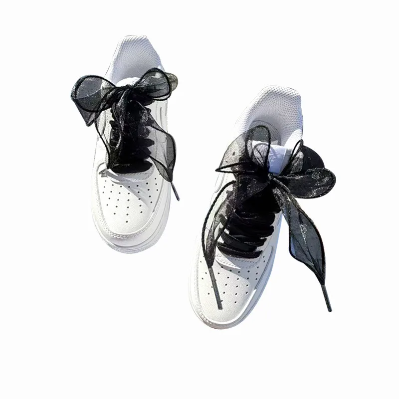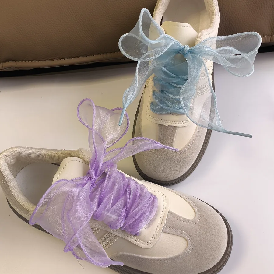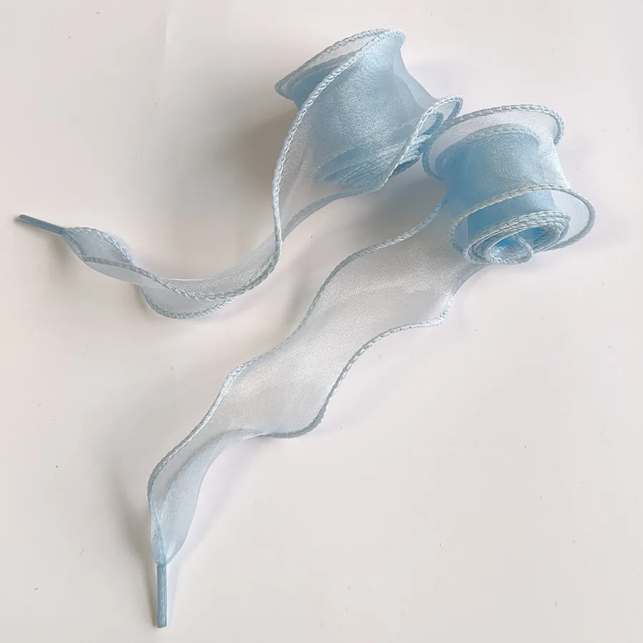 4cm Wide Festoon Fishtail Organza Shoelaces Wave Chiffen Yarn Bow Laces Beauty White Casual Sneaker DE Training Shoes Laces