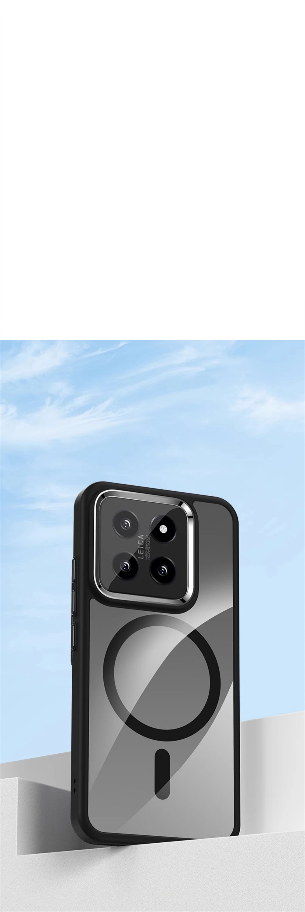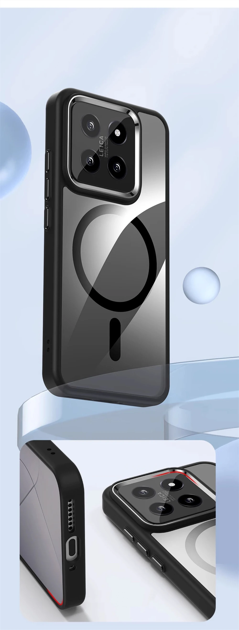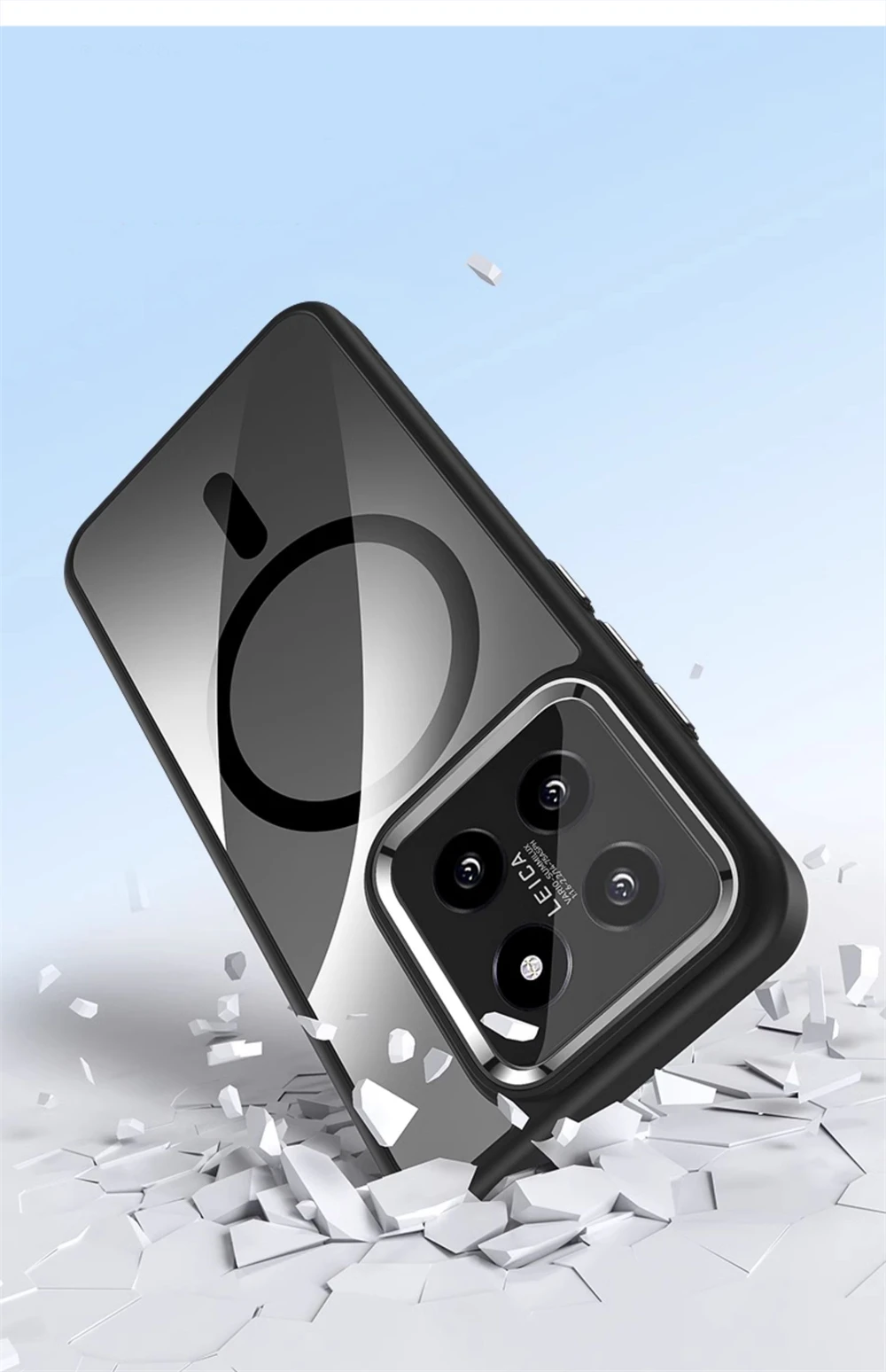 Color: Blue, Material: Aluminum - Luxury HD Transparent Shockproof Bumper Case For Xiaomi Mi 14 Pro Ultra For Magsafe Magnetic Wireless Charge Back Cover Shell