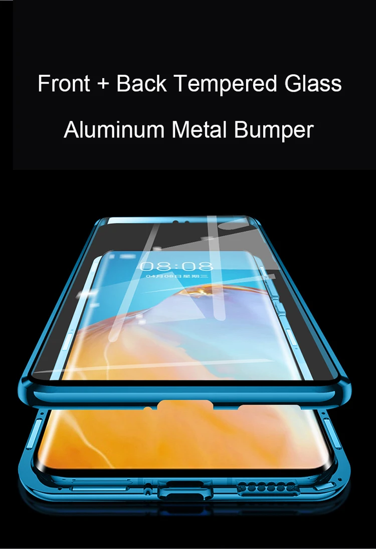 Color: Blue, Material: Aluminum - Phone Case Shell Double sided Protection Cover For Huawei P30 Pro P40 Pro Plus P40 Lite 5G Magnetic Adsorption Phone Sleeve bag