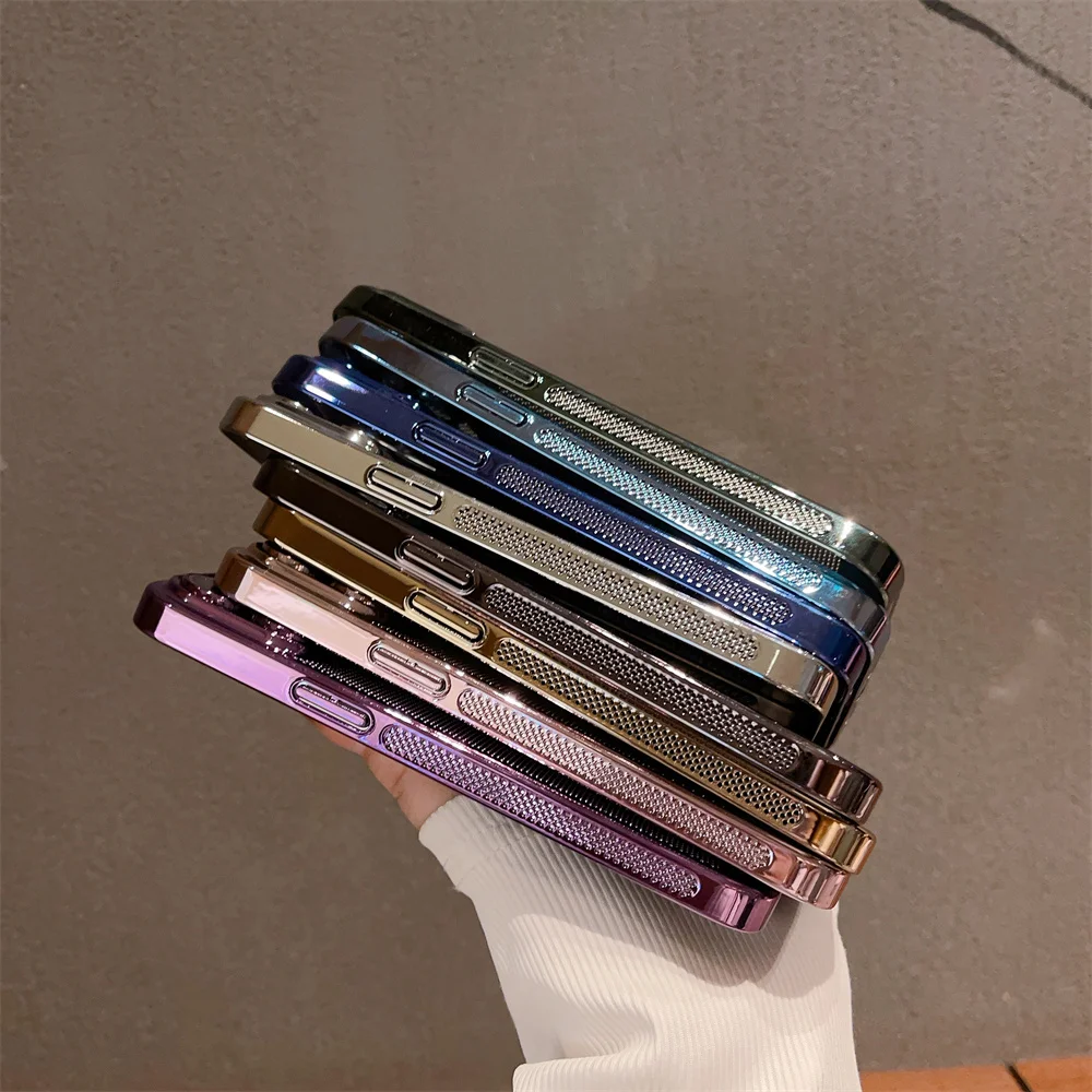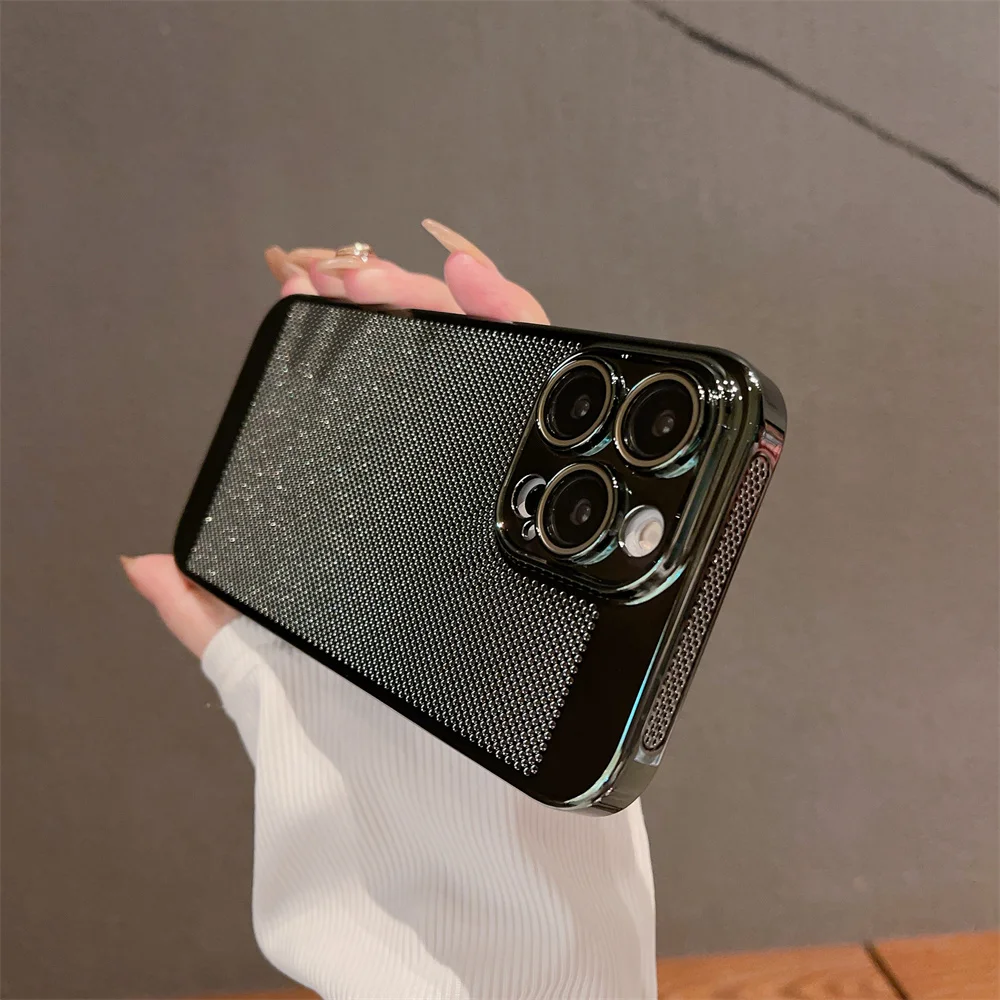 Color: Blue, Material: EVA - Luxury Plating Hollowed Out Case for iPhone 12 13 Mini 11 14 Pro Max X XR Xs Max 7 8 Plus Heat Dissipation Shockproof Lens Cover