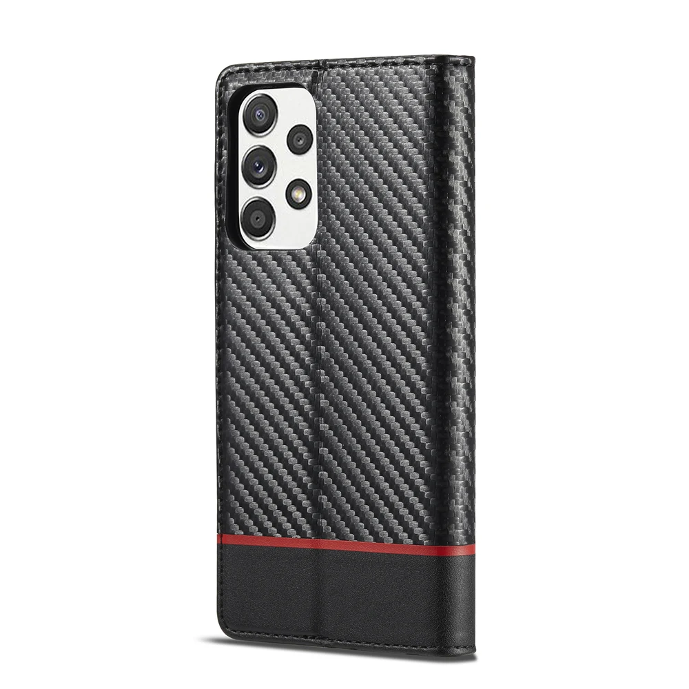 Color: Blue, Material: Microfiber - Carbon Fiber Leather Case for Samsung A14 A24 A34 A54 5G A13 A23 A33 A53 Galaxy A52 A72 A32 A12 A04S A02S Wallet Card Slot Cover