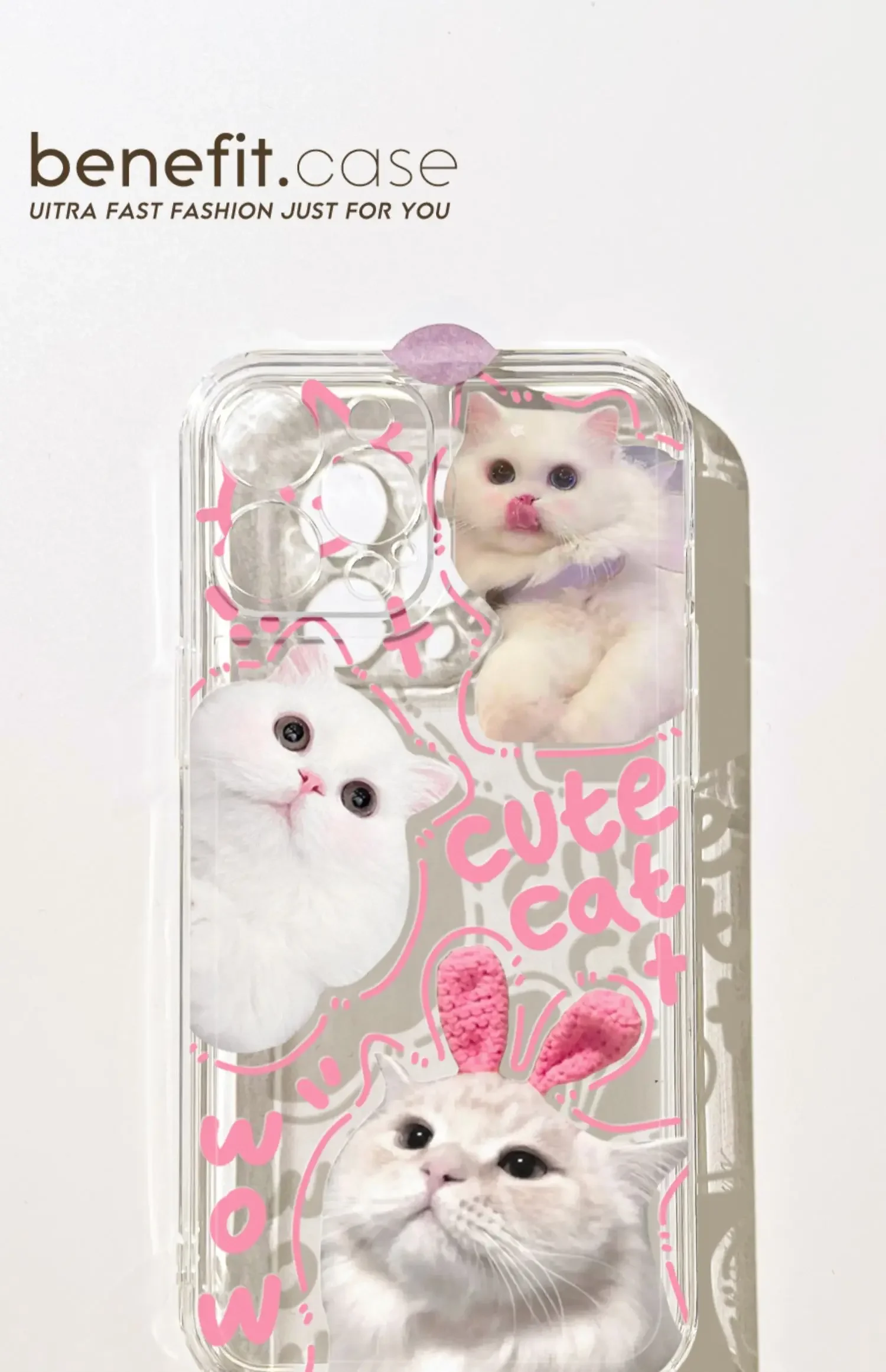 Color: Blue, Material: Microfiber - Cute Kitten Phone Case for iPhone 15 14 13 12 11 Pro Max XR XS X 7 8 Plus Mini SE Clear Cat Mobile Case