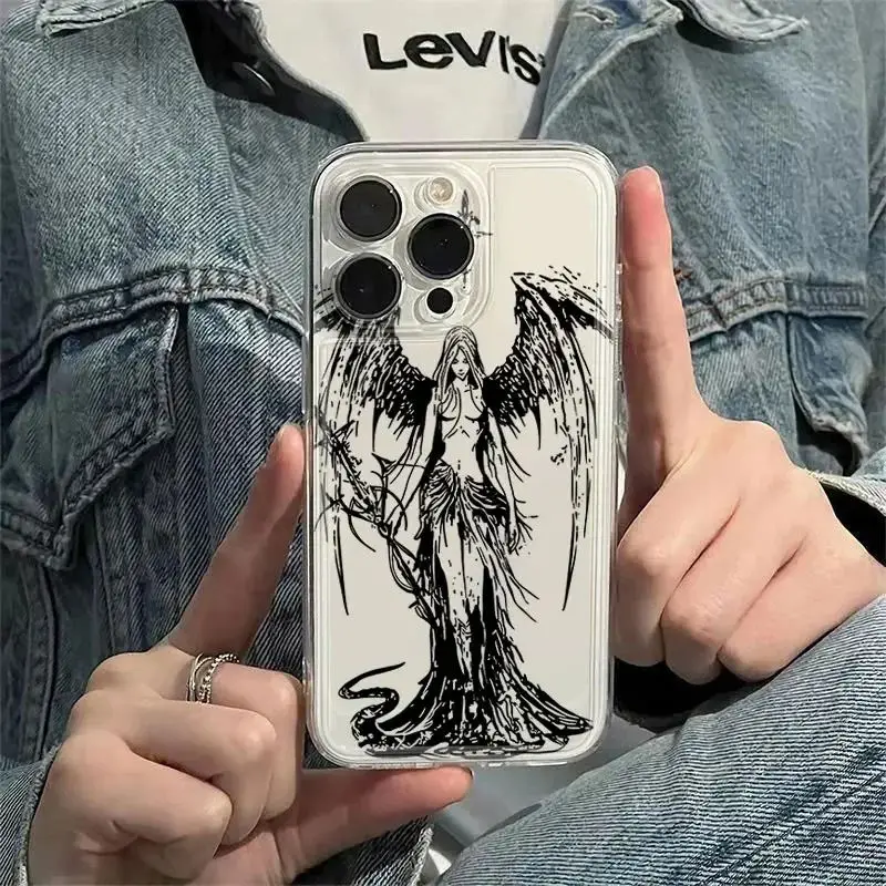 Color: Blue, Material: Microfiber - luxury bloodsacrifice Black Angel Death demon Phone Case For iPhone 15 14 13 12 11 Mini Pro Max XR XSMax 7 8 Plus SE Clear Cover