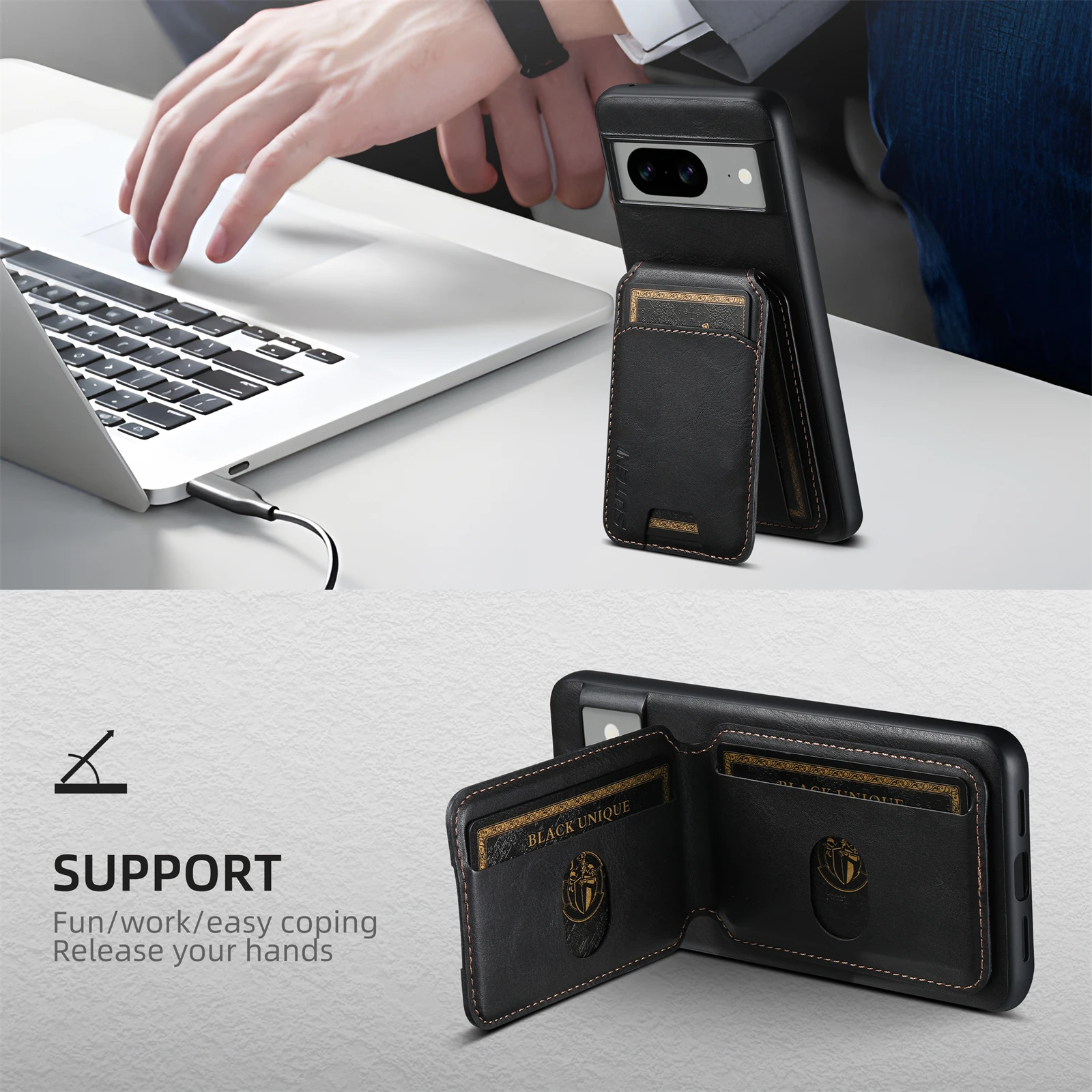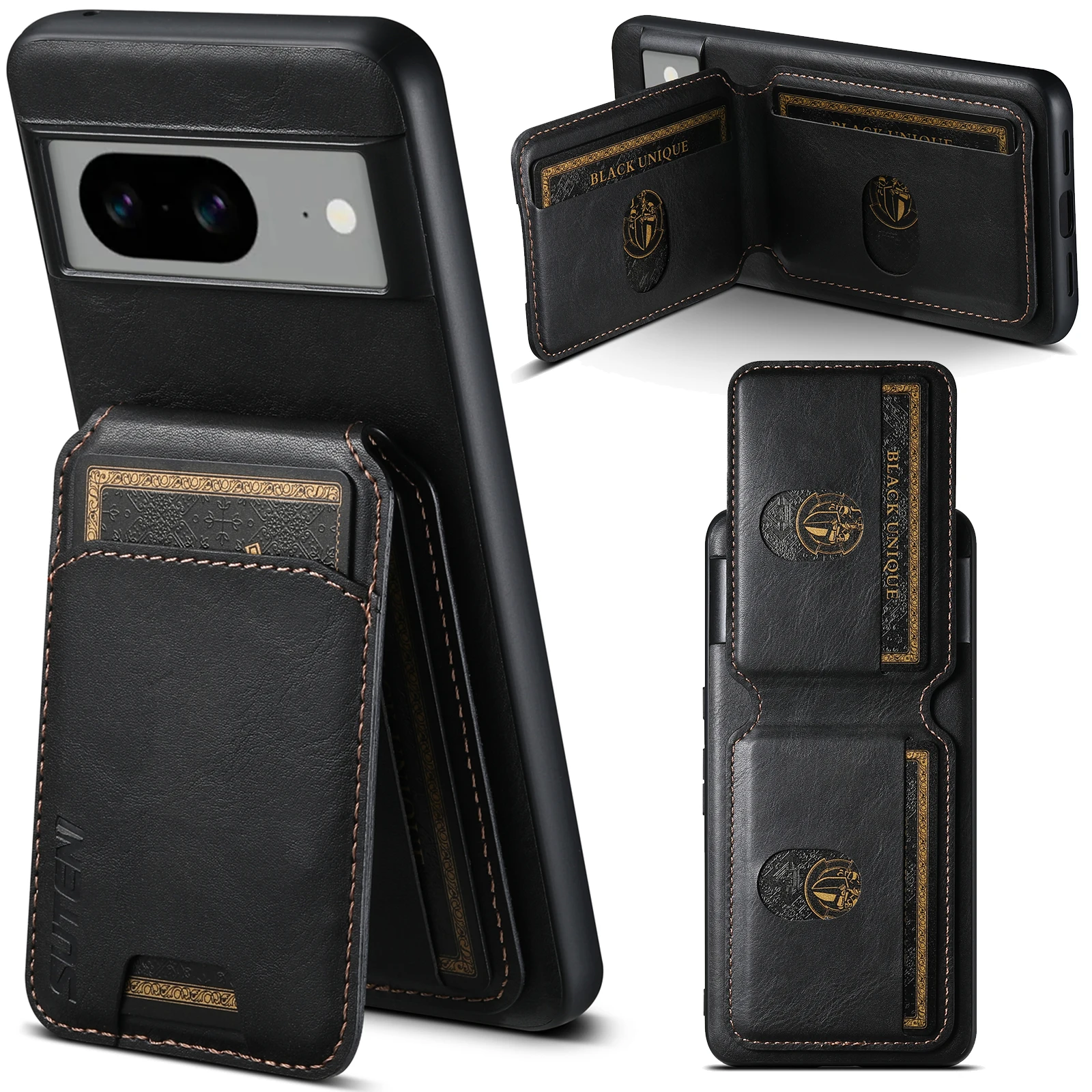 Color: Blue, Material: Neoprene - SUTENI Card Holder Leather Pocket Wallet Phone Case Stand For Google Pixel 8A 8Pro 7 7Pro 7A 6 6Pro 6A