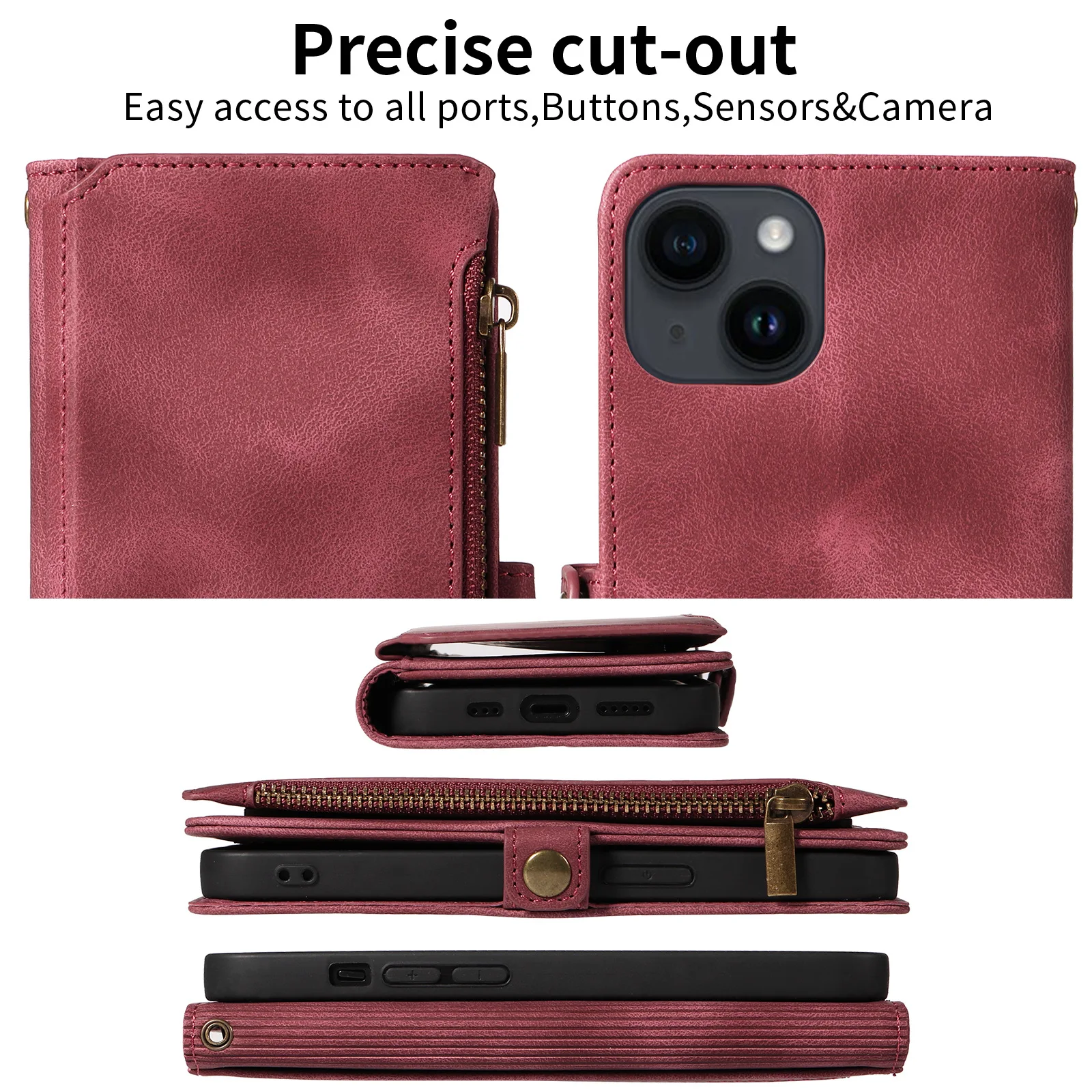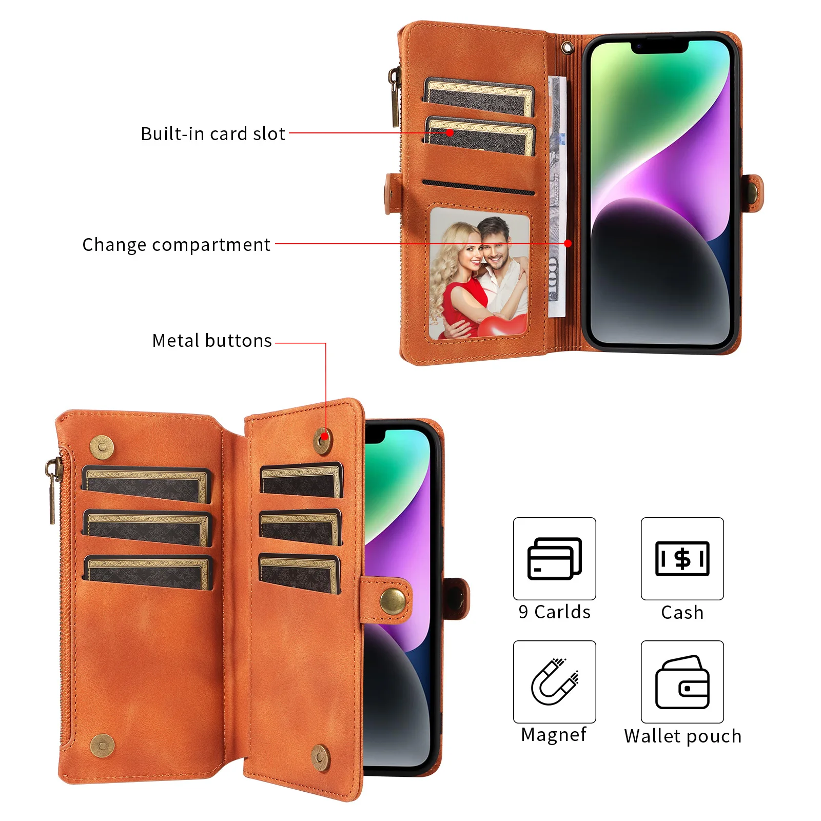 Feature 1: Zipper Wallet / flip case with 9 card slots + 1 cash slot+Zipper Pocket