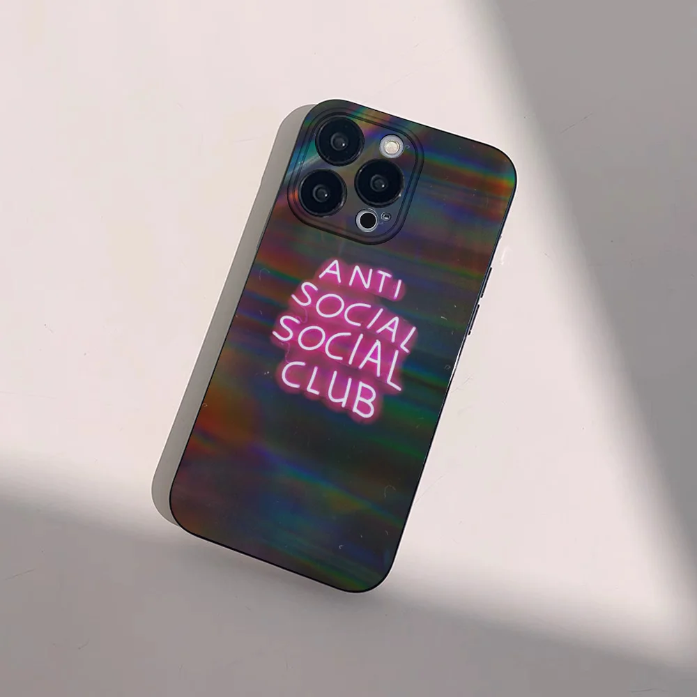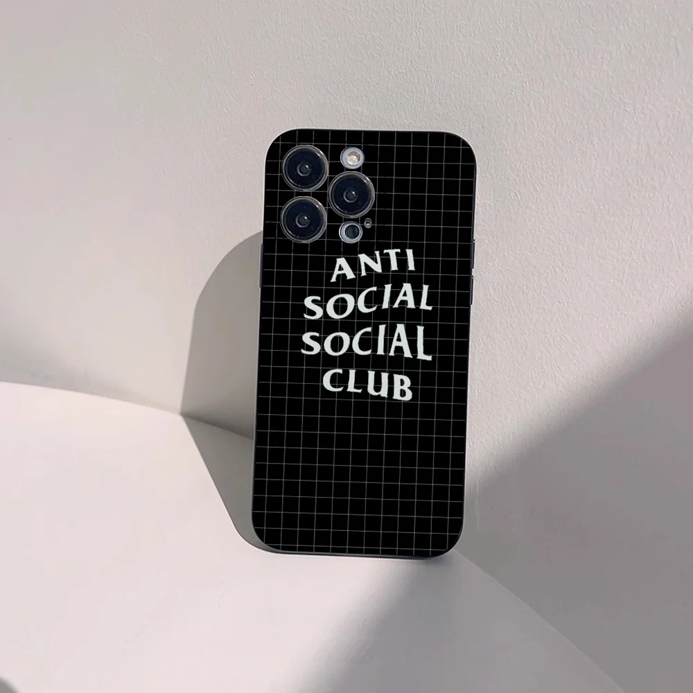 Color: Blue, Material: POLYESTER - Anti Social Social Club Phone Case For IPhone 16 15 14 13 Pro Max 11 12 Mini X Xs XR Se 2022 Black Silicone Cover