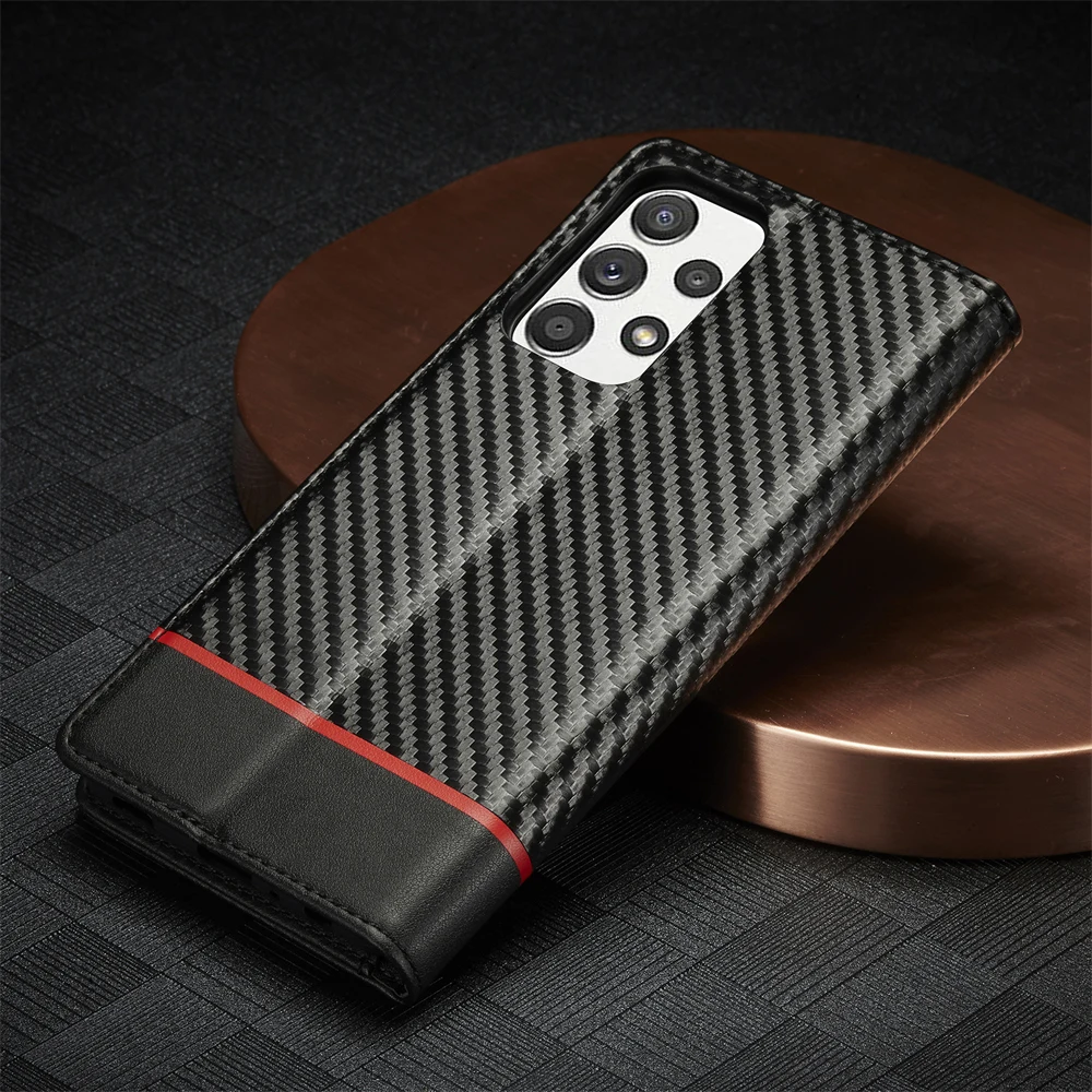 Color: Blue, Material: PVC - Carbon Fiber Leather Case for Samsung A14 A24 A34 A54 5G A13 A23 A33 A53 Galaxy A52 A72 A32 A12 A04S A02S Wallet Card Slot Cover