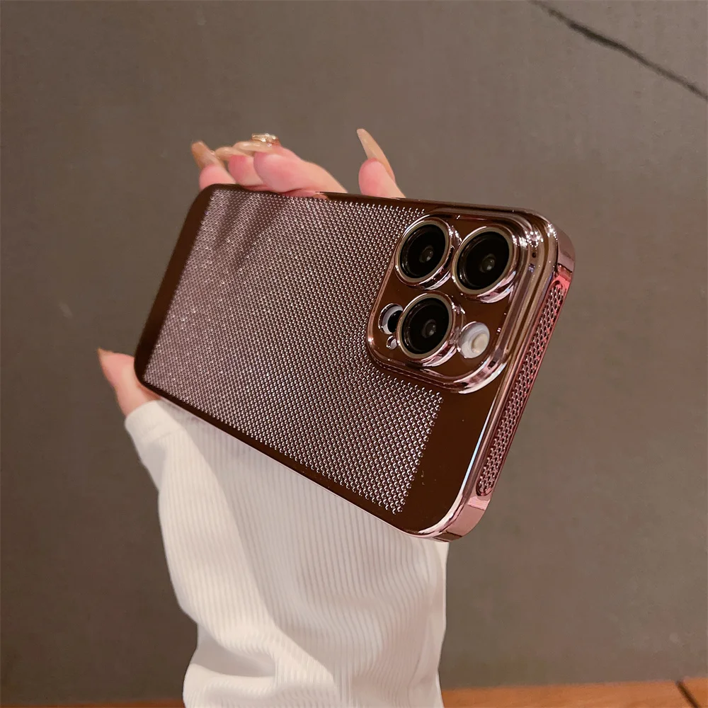 Color: Blue, Material: tpu - Luxury Plating Hollowed Out Case for iPhone 12 13 Mini 11 14 Pro Max X XR Xs Max 7 8 Plus Heat Dissipation Shockproof Lens Cover